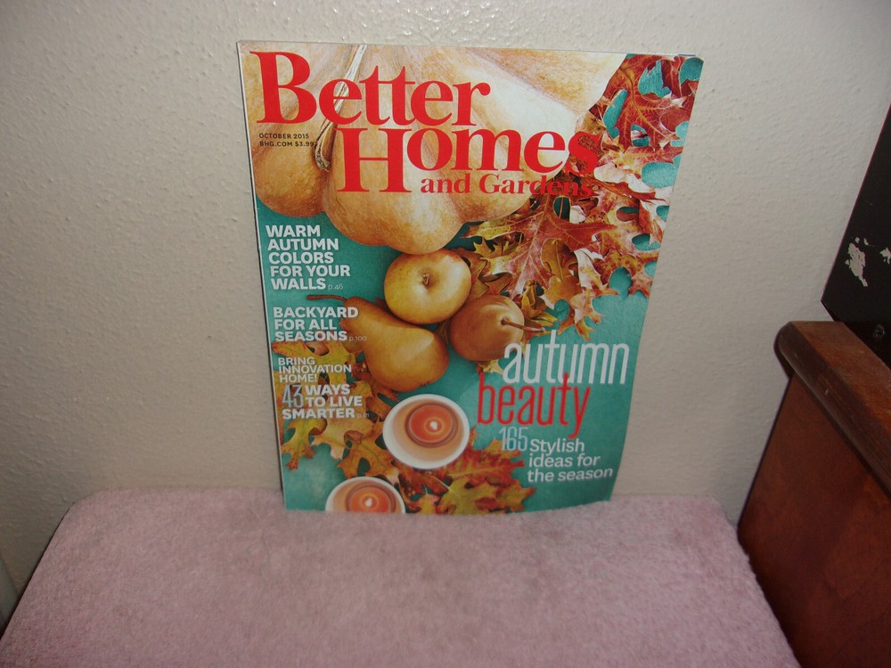 UP FOR SALE TODAY IS A LIKE OCTOBER 2015 BACK ISSUE OF " BETTER HOMES & GARDENS " MONTHLY MAGAZINE.....SHOWS ALMOST NO SIGNS OF WEAR.....SEE PHOTO'S......>>>>>PRICED TO SELL<<<<<.....THANKS FOR STOPPI...