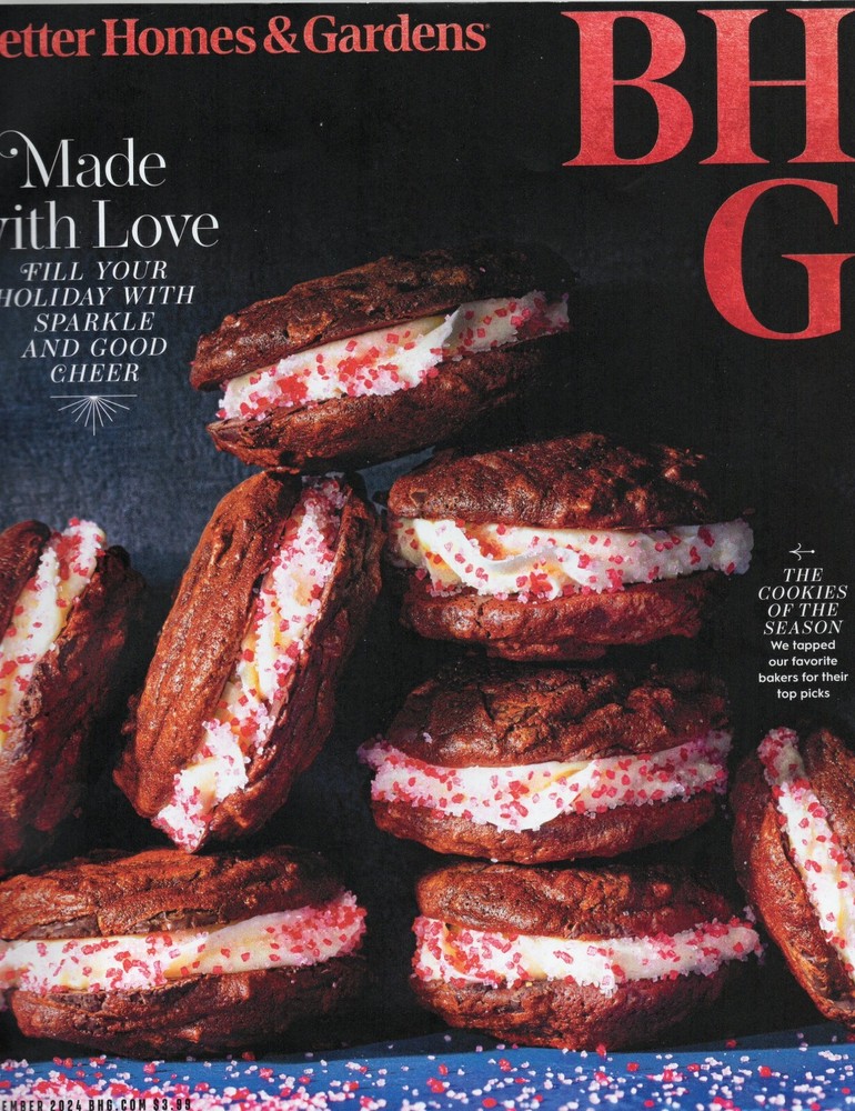 THIS AUCTION IS FOR A BETTER HOMEES & GARDENS MAGAZINE DECEMBER 2024 INSIDE INCLUDES MADE WITH LOVE FILL YOUR HOLIDAY WITH SPARKLE AND GOOD CHEER + THE COOKIES OF THE SEASON WE TOPPED OUR FAVORITE BAKERS FOR THEIR TOP PICKS + SWIRLING UP CHRISTMAS A STYLIST MIXES MARBLED DESIGNS IN CANDY COLORS INTO EVERY PART OF HER HOLIDAY DECORATIONS + HANGING UP HIOLIDAY CHEER BY THE YARD + PLUS LOTS MORE VERY GOOD CONDITION - HAS BEEN READ AND HANDLED - SOME MINOR DINGS FEEDBACK Please feel free to ask any questions before bidding I try very hard to be fair and honest and to give you very good customer service and strive for a 5 star rating If you have any problems with any of your items - please contact me before leaving feedback - I will definitely try to make things right THANKS FOR LOOKING AND CONSIDERING MY AUCTIONS - GOOD LUCK!