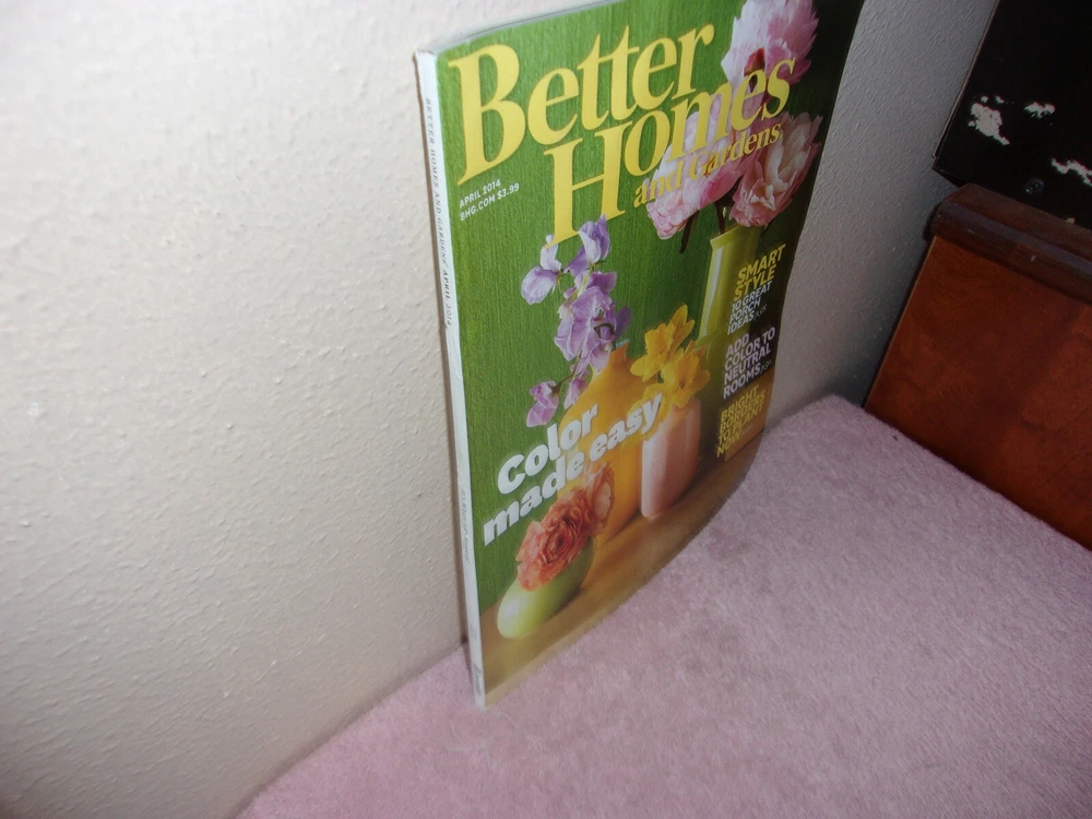 UP FOR SALE TODAY IS A LIKE NEW..APRIL, 2014 BACK ISSUE OF " BETTER HOMES & GARDENS " MONTHLY MAGAZINE.....SHOWS ALMOST NO SIGNS OF WEAR.....SEE PHOTO'S......>>>>>PRICED TO SELL<<<<<.....THANKS FOR STOPPING........(NB=MAG)