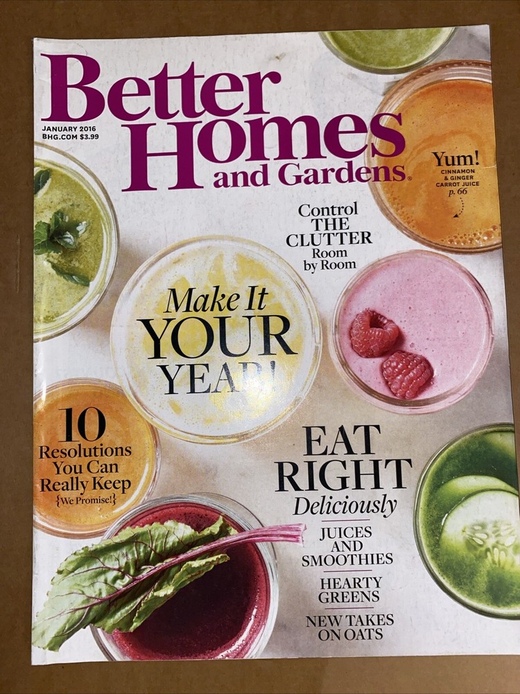 This collector's edition of Better Homes & Gardens Magazine's January 2016 issue is a must-have for anyone interested in home and garden design, cooking, and lifestyle. Filled with beautiful illustrations and tips on clutter control, this limited edition magazine is a treasure for anyone looking to keep their home organized and stylish. Featuring topics ranging from home improvement projects to delicious recipes, this physical format magazine is perfect for anyone who wants to stay inspired and organized. With its non-paid circulation and monthly publication frequency, this magazine is a great addition to any home. Don't miss out on this opportunity to add a piece of home decor to your collection. BOX 39