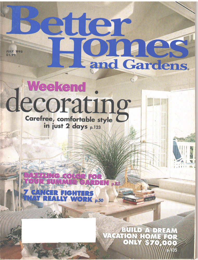 ************************************ BETTER HOMES & GARDENS Magazine July 1995 Pages: 222 COVER/SOME PAGES HAVE CREASES/WRINKLES/TINY TEAR OTHERWISE IT IS IN VERY GOOD CONDITION MAILING LABEL HAS BEEN COVERED ************************************ THANKS FOR LOOKING