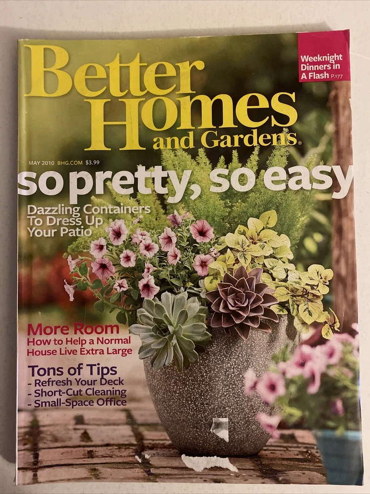 BETTER HOMES & GARDENS Magazine, MAY 2010, DAZZLING CONTAINERS TO DRESS UP PATIO. Condition is Very Good. Shipped with Economy Shipping.
