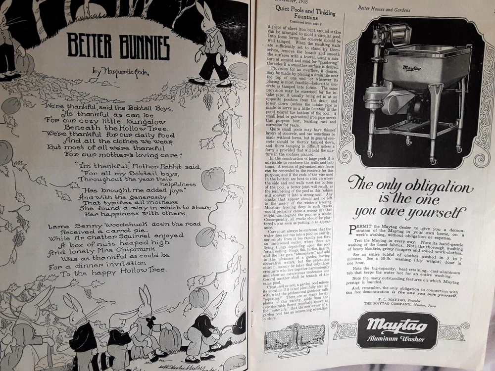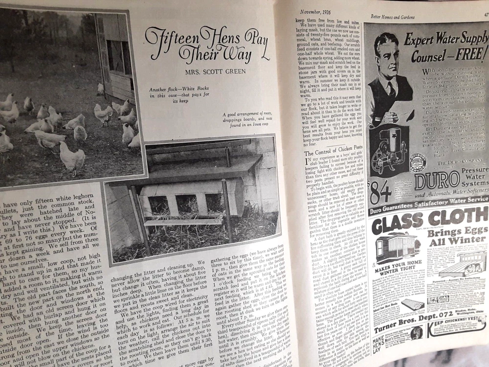 | Features | Raising Chickens, Vintage Ads, Lovely Cover, Cooking, Ponds & Fountains |