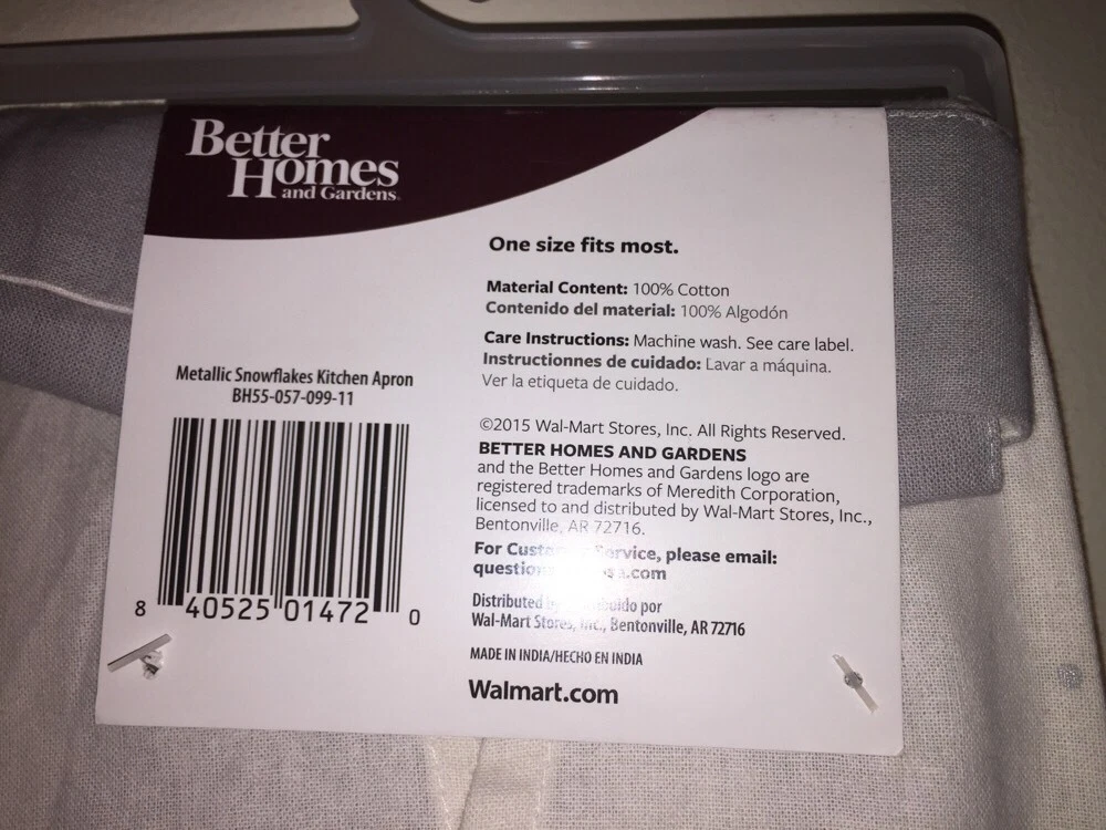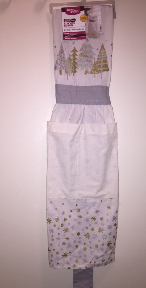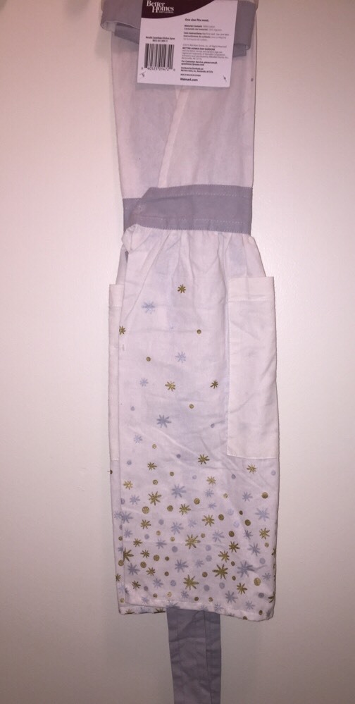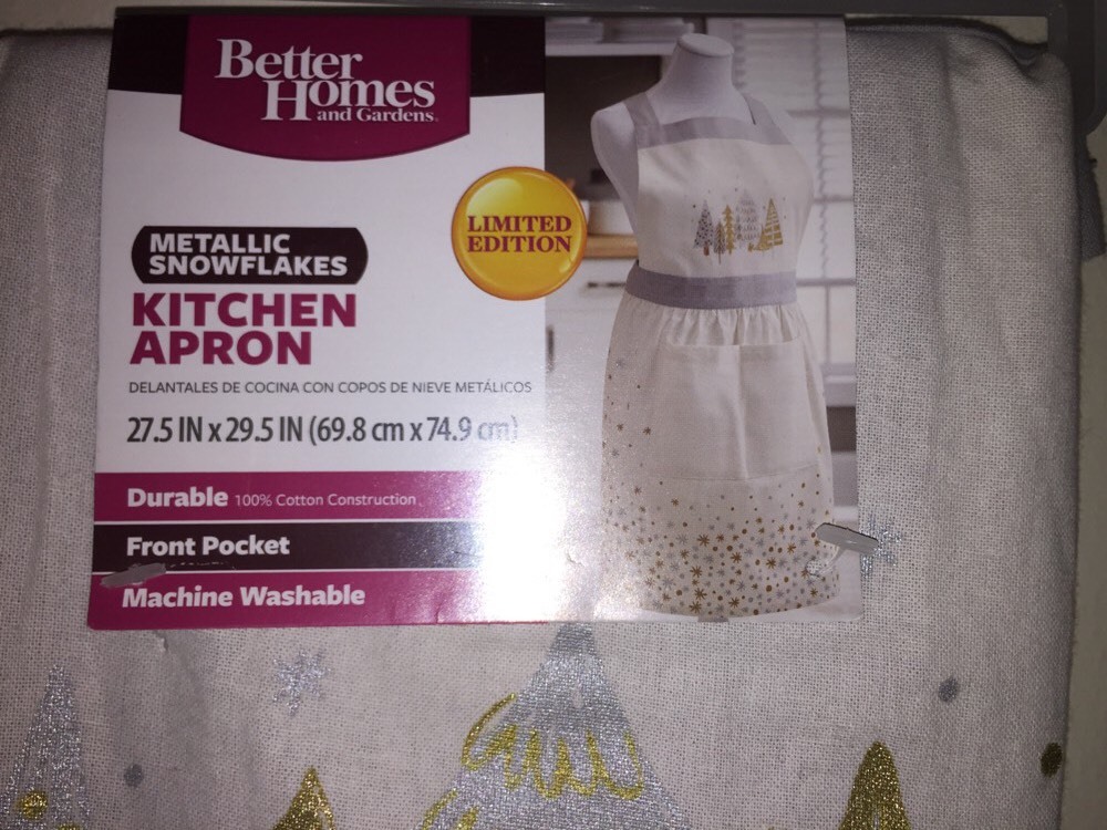 Brand new with tags adorable BETTER HOMES & GARDENS Limited Edition METALLIC SNOWFLAKES WITH TREES ADULT APRON IN CREAM WITH SILVER & GOLD. Approximate size: 27.5" x 29.5" 100% Cotton Front pocket Machine wash My items come from a pet free, smoke free home. I try my hardest to make sure all my items are in perfect condition. If you have any questions please email me before bidding, I will respond to all messages within 24 hours. The same goes for if you have any problems, message me before leaving feedback so that I have a chance to address all concerns. Please remember to leave feedback, I really appreciate it. Thank you for taking the time to look! I only accept PayPal. Payment is due 2(two) days after the listing ends so I can ship to you as quickly as possible!! Please do not buy if you don't intend to pay, I've had a few issues with this in the past. It wastes both of our time. Thank you. Items will ship within 2 business days after payment is received, with exceptions for inclement weather and holidays. I ship USPS and provide a tracking number. Sorry, no returns. I only ship throughout the U.S.