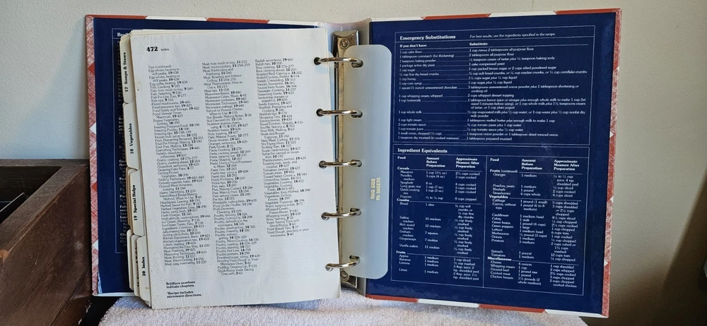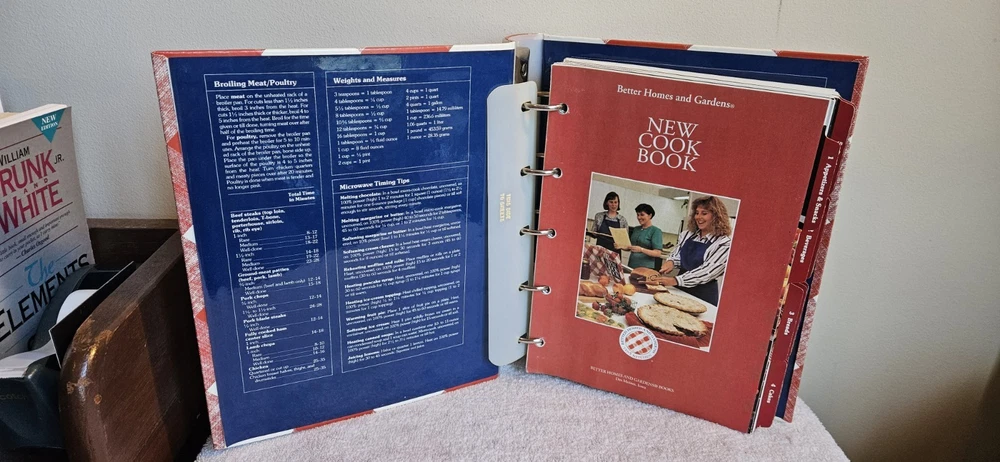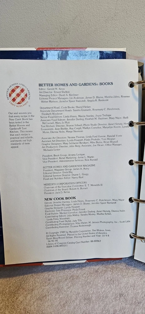 ARE YOU THE ENTERTAINER??!! Are you ready to serve up some DELICIOUS DINNERS & DESSERTS BETTER HOMES & GARDENS style ?! If so, then this SUPER SWEET Hardcover "NEW COOK BOOK" is just what you've been waiting for ;) This CLASSICALLY COOL "Cookbook" is in GOOD+ shape overall & waiting for you to crack it open & get learnin' OR display it proudly amongst the rest of your Literary Collection :) Wear &/or tear shows itself in the form of: COVER: Light/moderate scratching/smudging/marking of the front or back cover areas... Light/moderate wear of corners & edges... INNER PAGES: Possible light/moderate smudging/scratching of inner cover areas... Light/moderate & random creasing of page corners... Light/moderate & random smudge/stain spots on pages... But I can otherwise find zero writing or underling... AND zero pages are missing :) It's a wealth of knowledge just waiting to be gained by you or your favorite Chef :) TAKE NOTE: THIS IS THE 1989 PUBLICATION BUT IT'S THE 1996 PRINTING. BE SURE to check out information & photos included above... What you see is what you get ;) Today is the day to prep for your next DINING EVENT!!
