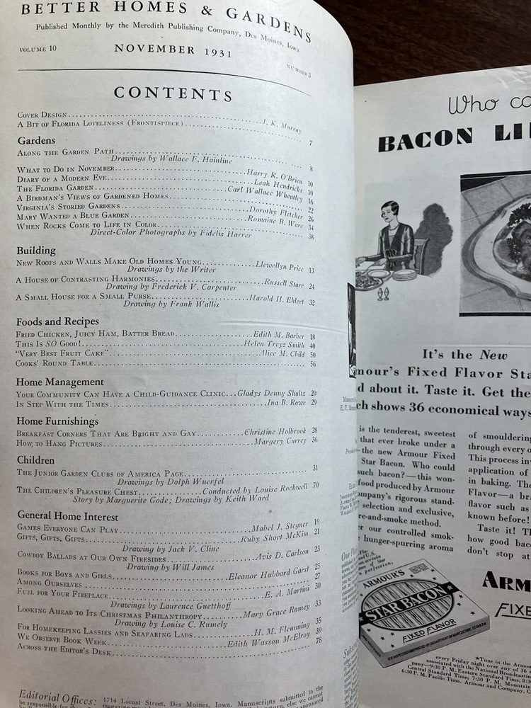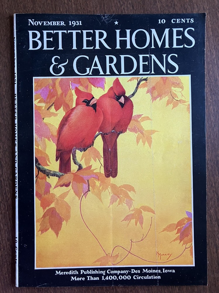 BETTER HOMES AND GARDENS - November 1931 - Cardinal Cover 78 pages. Covers intact. Spot of light wrinkling at top of front cover that carries through to the interior pages, otherwise pages are tight and clean. No tears, no writing, no loose pages seen. ***Please view all photos carefully for detail … they are an important part of the description and message any questions prior to bidding. Thanks for looking!! * All sales are final so please know what you are buying. We do our best to provide accurate descriptions and photographs. We strive for excellence in our customer care but being human, we can make mistakes, so if there is a problem please notify us immediately so we can help to resolve any issue. **Please note that when you agree to purchase an item, you are agreeing to the stated shipping cost. Shipping costs continue to rise and we do our best to be accurate and sometimes have to guestimate, so if the shipping cost is a bit more than the actual cost to ship, please take into consideration the cost of packaging and the means it requires to get to the post office. We really do appreciate your kind understanding and extended grace ...