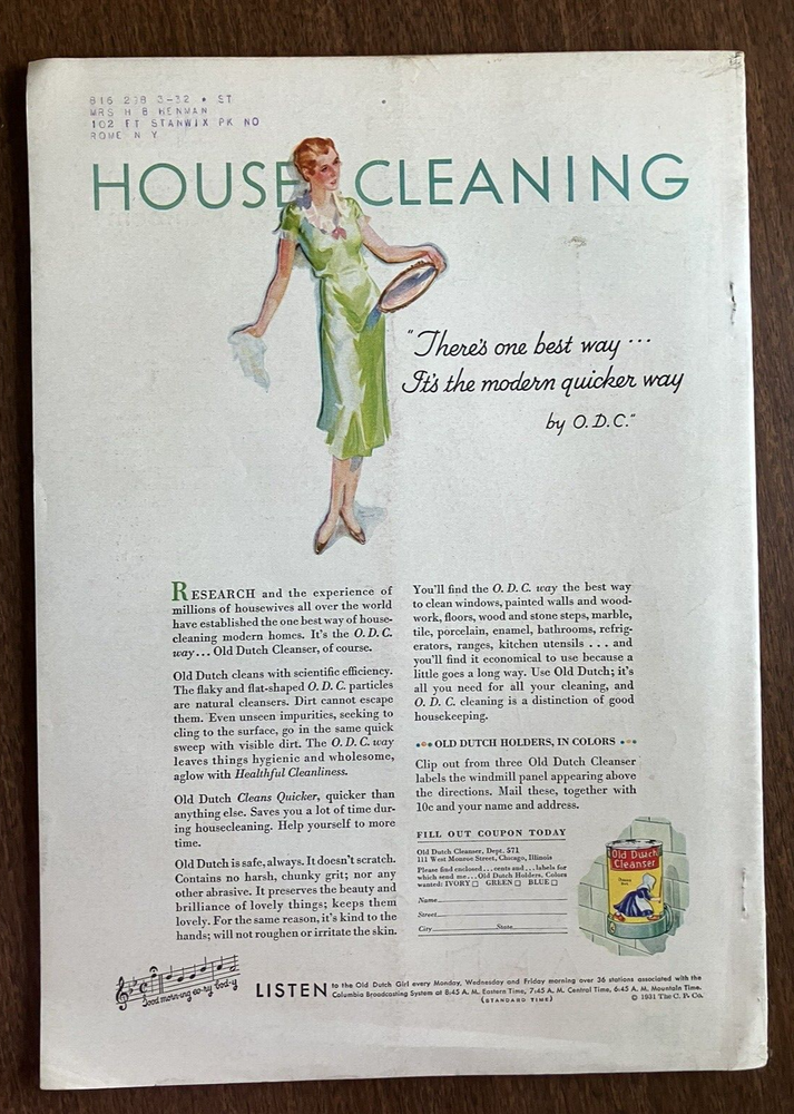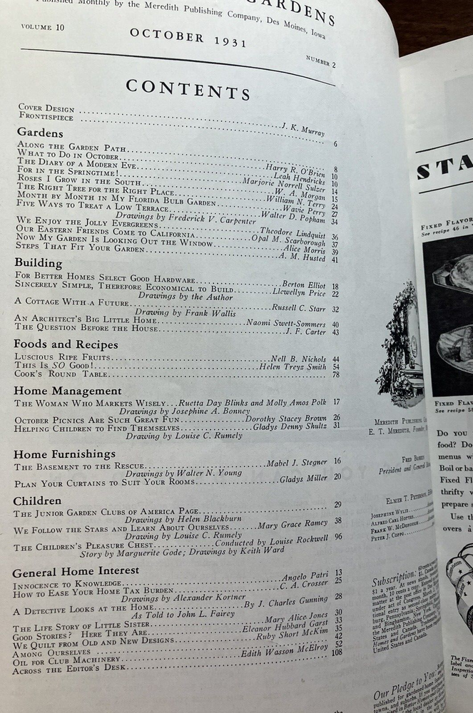 BETTER HOMES AND GARDENS - October 1931 Covers intact with minimal soiling and light edgewear. 108 p ages are tight and clean. No tears, no writing, no loose pages seen. Great articles and advertisements. ***Please view all photos carefully for detail … they are an important part of the description and message any questions prior to bidding. Thanks for looking!! * All sales are final so please know what you are buying. We do our best to provide accurate descriptions and photographs. We strive for excellence in our customer care but being human, we can make mistakes, so if there is a problem please notify us immediately so we can help to resolve any issue. **Please note that when you agree to purchase an item, you are agreeing to the stated shipping cost. Shipping costs continue to rise and we do our best to be accurate and sometimes have to guestimate, so if the shipping cost is a bit more than the actual cost to ship, please take into consideration the cost of packaging and the means it requires to get to the post office. We really do appreciate your kind understanding and extended grace ...