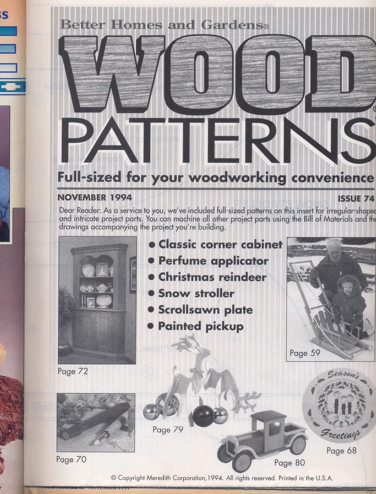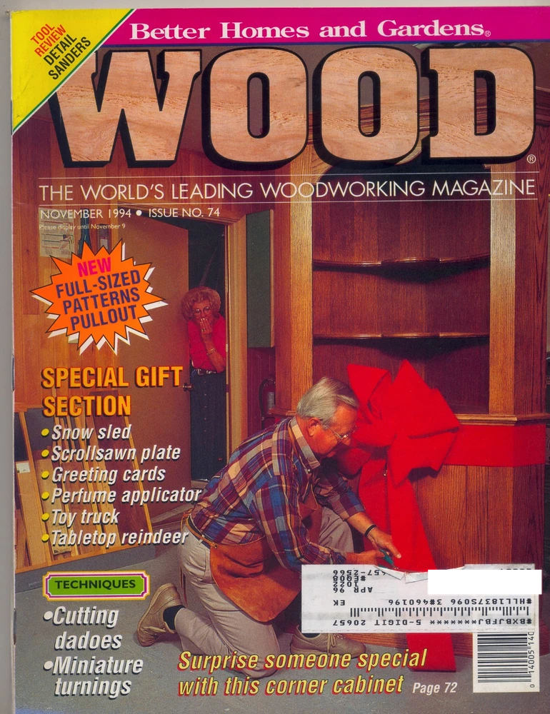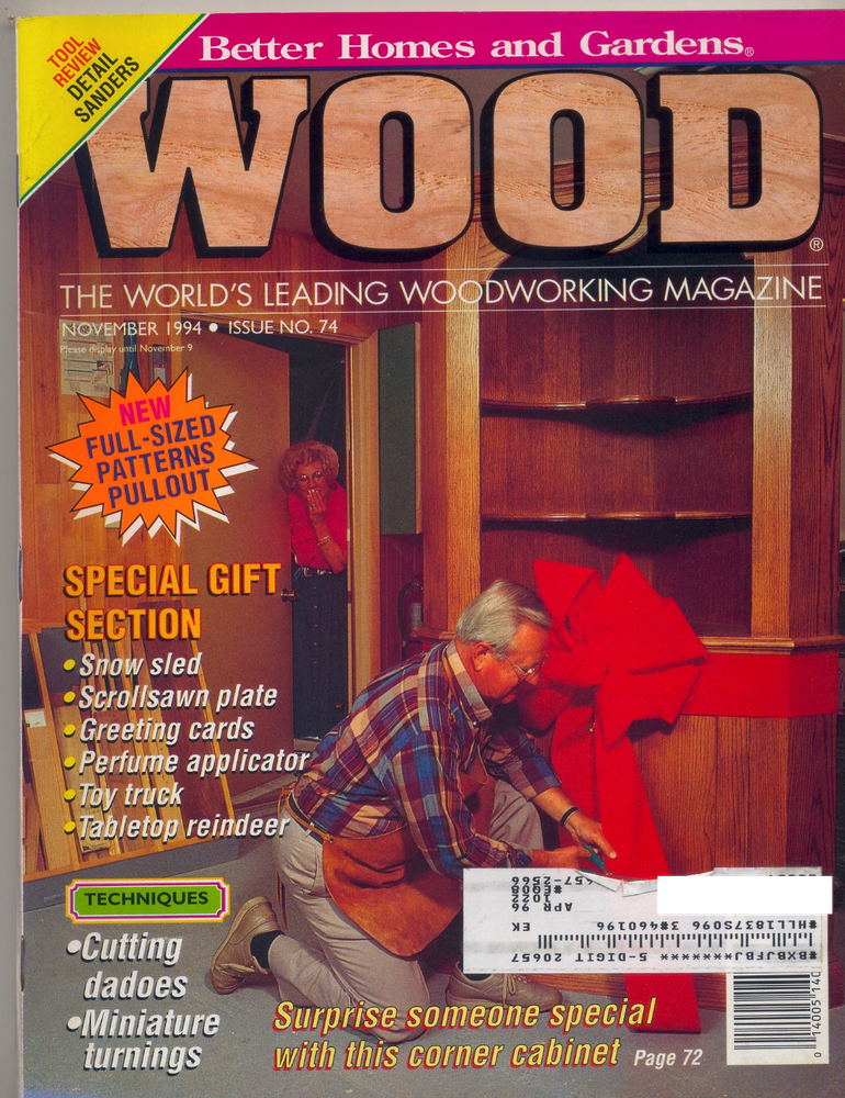 PSST! I'll be putting up a LOT of woodworking magazines this week! Please add me to your favorite sellers so you don't miss any issues! BETTER HOMES & GARDENS WOOD MAGAZINE NOVEMBER 1994 #74 COVER STORY: SPECIAL GIFT SECTION! Great vintage woodworking magazine! See photos for table of contents, as well as a sample page! FINE condition, complete. Has a SLIGHT musty smell. Has address label on the front cover (I blocked out the owner's name for privacy on the scan only, not on the actual magazine). Stored here and shipped to you in a brand-new magazine collector's bag. WOW! BUY AND PAY TODAY AND IT SHIPS OUT OF HERE TOMORROW! Thank you for taking the time to read this listing. I've been selling on eBay since 2003. My feedbacks will attest to my reliability. Please check my other great items for sale in my eBay store. I'll combine shipping for multiple items purchased and even give you a percentage off the 2nd, 3rd, and 4th items. Take care, Collectiblejames #wood #woodworking #projects #gifts #snowsled #scrollsaw #greetingcards #perfume #toytruck #reindeer