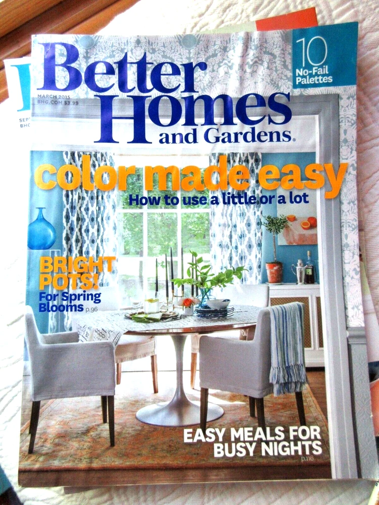 Eight issues of Better Homes & Gardens magazine from 2014 & 2015. 1,344 total pages filled with decorating tips, gardening, organizing, baking, recipes and more. See photos for detail. Will be shipped Priority USPS. This group includes: JAN 2014 SIMPLY ORGANIZED FEB 2014 EASY MJAKEOVER IDEAS APRIL 2014 COLOR MADE EASY MAY 2014 SAVE TIME, LIVE BETTER JULY 2014 89 WAYS TO LOVE SUMMER AUG 2014 INSTANT REFRESH! SEPT 2014 INSPIERED STYLE MARCH 2015 BRIGHT POTS! Thank you for shopping with us!