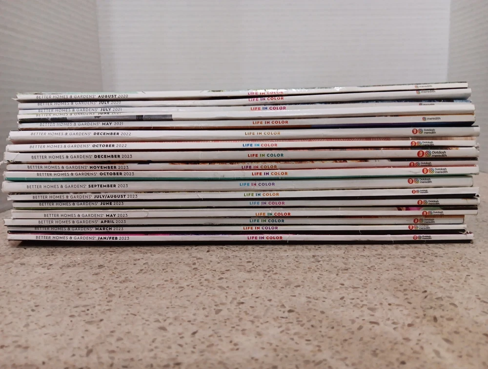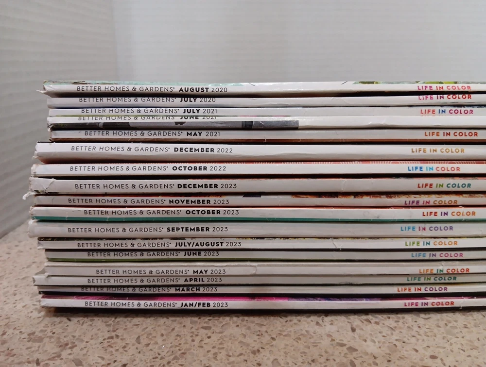 This lot includes 29 issues of Better Homes & Gardens magazines, covering all of the year 2023 and a few from 2020, 2021 and 2022 & Jan 24.,Mar 24+ more. The magazines feature a range of articles on home and garden topics, including decorating, cooking, and landscaping. They are in excellent used condition, with no tears, creases or marks on the pages. These magazines are perfect for anyone interested in home and garden topics, whether for personal use or for professional research. SEE ALL PICS FOR DETAILS
