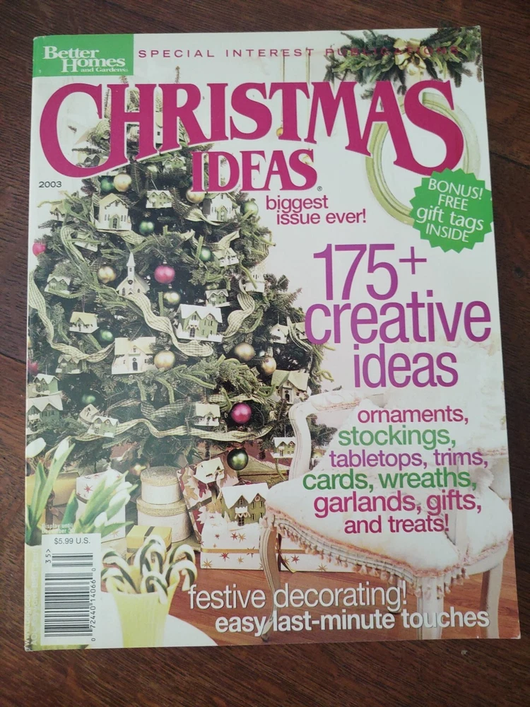 BETTER HOMES and GARDENS Special Interest Publications Christmas Ideas 2003 I am selling my full collection of Christmas Ideas magazines from 1980 to 2023, All the patterns are intact. Please look at the pictures carefully before bidding. There may be differences in computers in picking up the various colors. The item pictured is the exact one you will receive. I do not accept returns unless I have grossly misstated an item. I ship by the lowest rate and I do combine shipping. Let me know if you are interested in any other items. Please Note: magazines CANNOT be shipped Media Mail. They contain advertisements and are not allowed. Smoke free and pet free home. Import duties, taxes and charges are not included in the item price or shipping charges. These charges are the buyer's responsibility and will generally be collected by your post office or customs office on delivery of the item. Please check with your country's customs office to determine what these additional costs will be prior to bidding/buying. I cannot mark any items as a gift or undervalue any items on a customs form.