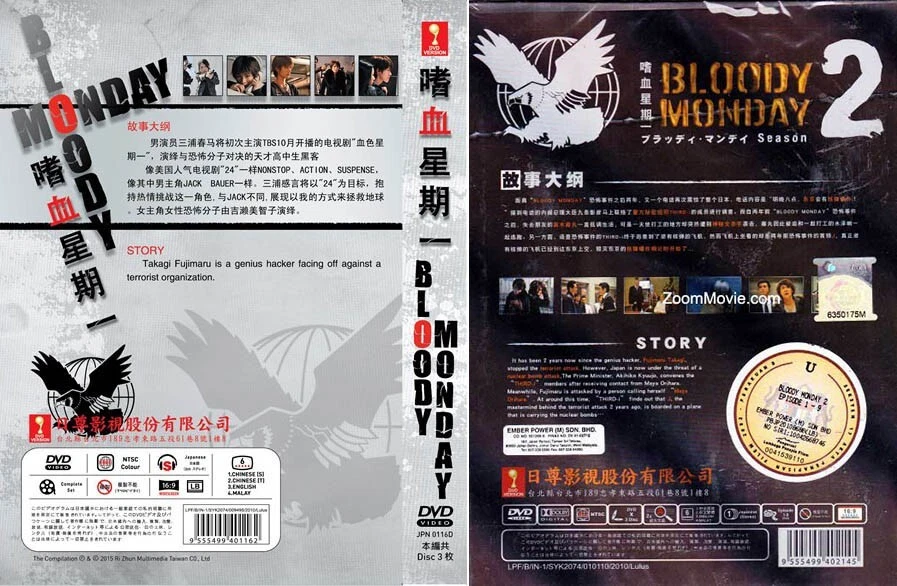 TITLE : BLOODY MONDAY SEASON 1-2 - COMPLETE TV SERIES JAPANESE DRAMA Number of Episode : 1 - 20 End Number of Disc : 6 Language : Japanese Subtitle : Japanese / English Condition : NEW, Original & Licensed Item Disc Format : NTSC Region Code : All Region/Region FREE "0" Payment We Accept PAYPAL Payment is required within 7 days of purchase. If for any reason you are unable to pay within 7 days, please contact us prior to bidding/buying. We are flexible with our payment terms for people who contact us first. Delivery Free Register Track Your Shipment 10 ~ 21 Days Without Sat - Sun Working Days. Item will be shipped ONLY after clearing of payment. All order will process 2-3 working days (Not included weekend or public holiday) after received the payment. We only ship to confirm address on "Ebay Invoice Order Detail". Return Buyer Pay The Return Postage. 30 days Returnable. Items must be returned in perfect original condition, buyer responsible for returns shipping cost. Refunds will be arranged thru Paypal. Feedback Should Any Problem Arise, Please E-Mail Let Us Know & We Will Do Our To Correct Any Problem
