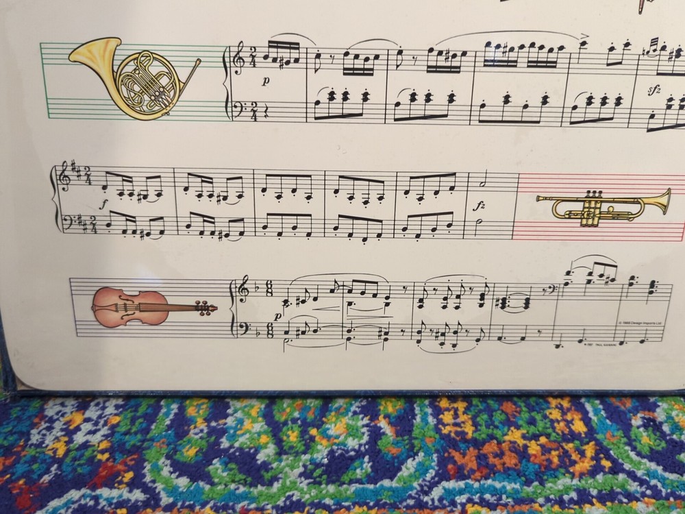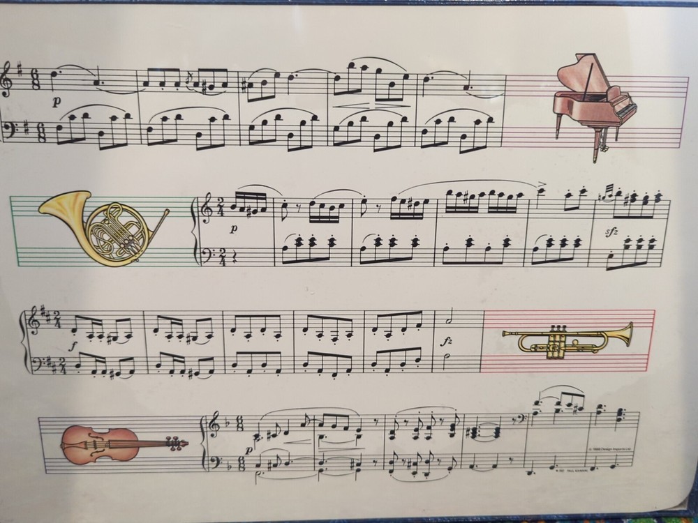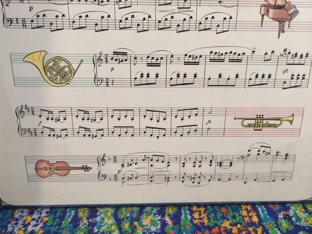 Add a touch of music to your dining table with this set of 4 American Pennyroyal Placemats. These rectangular placemats are made of high-quality cork material and feature a musical design that is sure to impress your guests. Measuring 11.5 inches in length and 17 inches in width, these placemats are perfect for any occasion and are sure to enhance your dining experience. The multi-colored pattern adds a pop of color to your table setting and is sure to complement any decor.