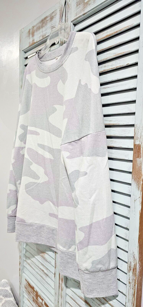 BOUTIQUE MUTED CAMOFLAUGE SWEATSHIRT Size Large Soft Knit Cozy Unbranded Stay comfortable and stylish with this boutique muted camouflage sweatshirt. Made from a soft knit polyester blend, this lightweight sweatshirt is perfect for all seasons. It features a crew neck and drop shoulder sleeve type, with a relaxed fit and pullover closure. Ideal for travel, activewear, and casual occasions, this sweatshirt has a camouflage pattern with multicolor accents, making it a great addition to your wardrobe. It is suitable for women of size L and has a chest size of 25". Get your hands on this cozy and trendy sweatshirt today! Boutique Camo Sweatshirt 65% Cotton/ 35% Polyester Unbranded - Boutique Gray/Green Muted Camoflauge Long Sleeve Crew Neck Pullover Casual, Lightweight, Comfort, City, Travel, Cozy, Sylish, Trendy Measurements are approximate Chest: 25" Length: 27.5" Bottom Opening: 21" Sleeve Length: 16" Women's Size Large If you notice something that we didn't mention, please contact us before leaving negative feedback. We're human too and we make mistakes now and again. We'd love the chance to make things right. We want our customers to be 100% satisfied. Please don't hesitate to reach out if there's anything we can help you with. We will leave you positive feedback immediately after we receive your payment and we hope if you are happy with your purchase, you will do the same for us. We Ship Daily! If payment is received before noon, ships same day (excludes holidays, weekends). If payment is received after noon, ships next day (excludes holidays, weekends).