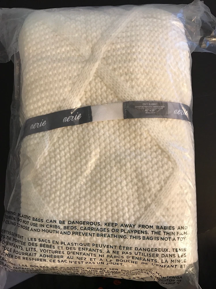 BRAND NEW AERIE American Eagle Outfitters COZY BLANKET 40 x 50" CREAMY WHITE...