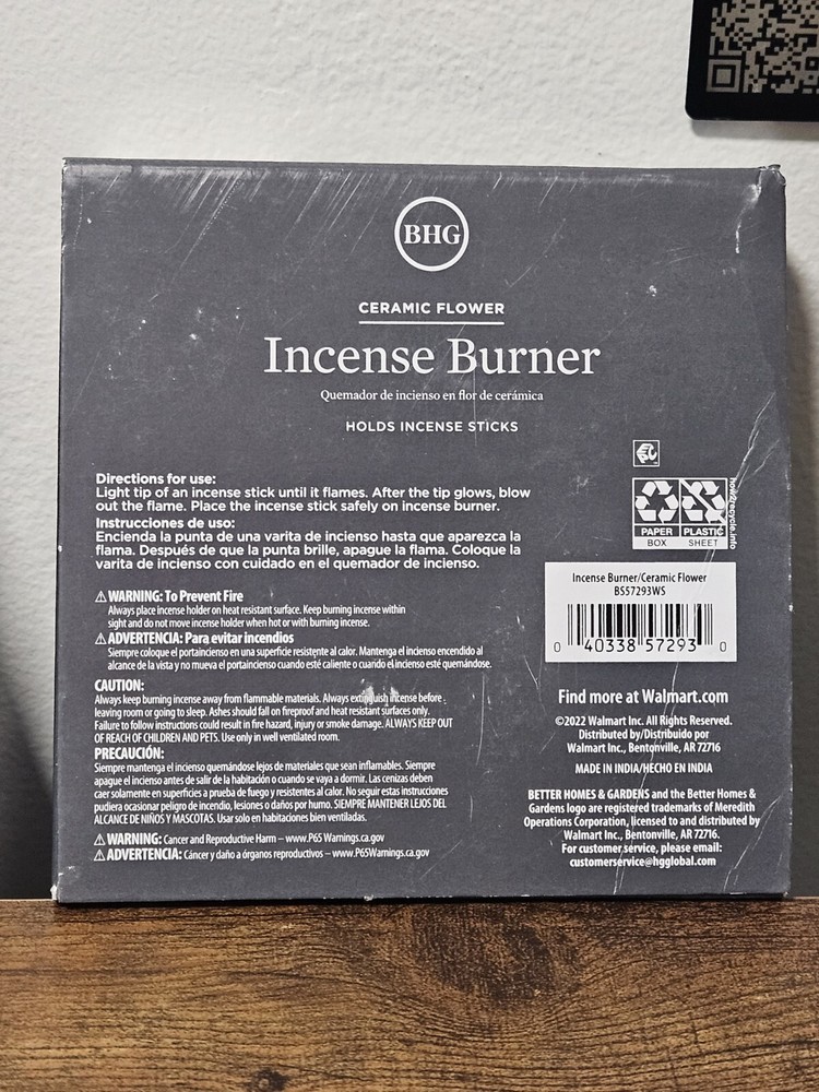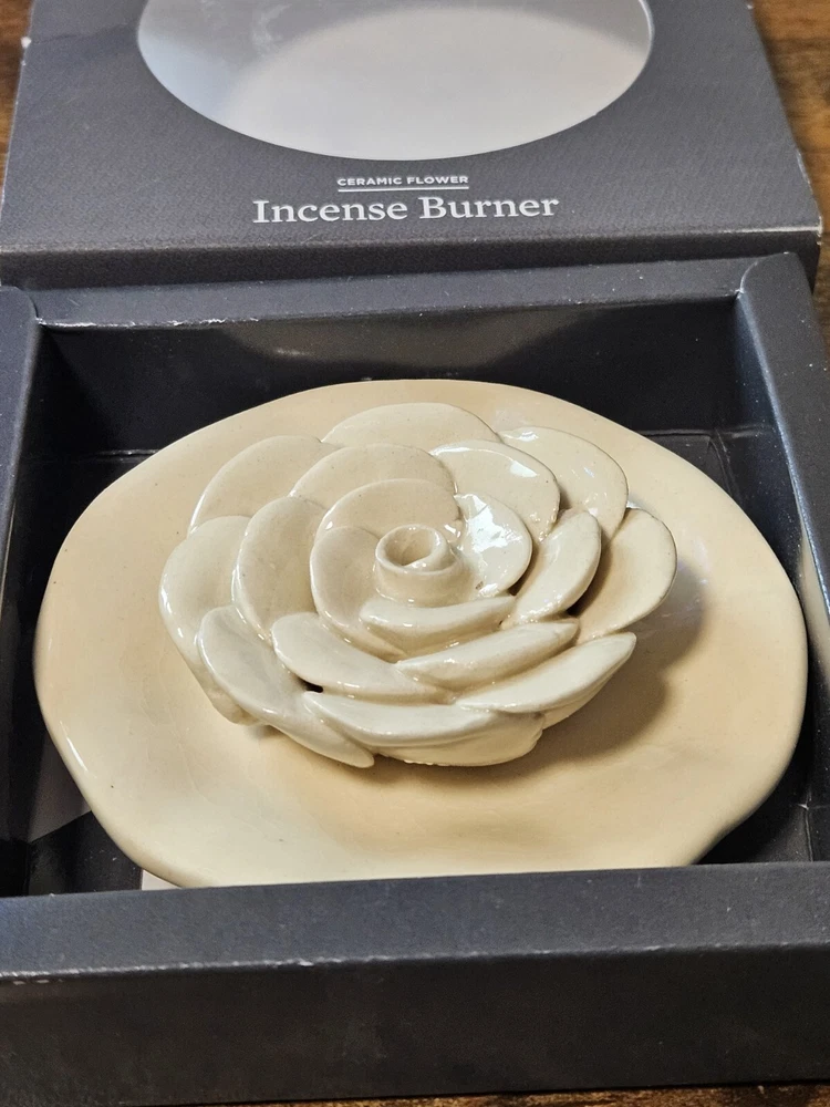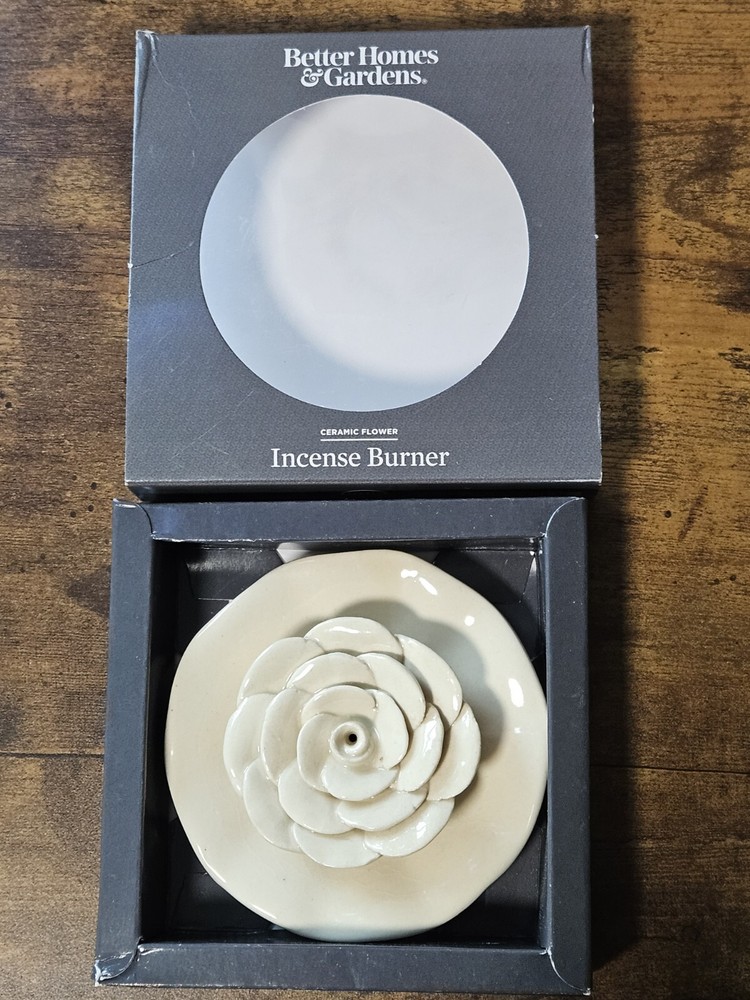 Enhance your meditation and relaxation experience with this beautiful ceramic flower incense burner from Better Homes & Gardens. Its exquisite design and high-quality construction make it a perfect gift for your loved ones who enjoy the beauty of nature. Brand new in box ☺️
