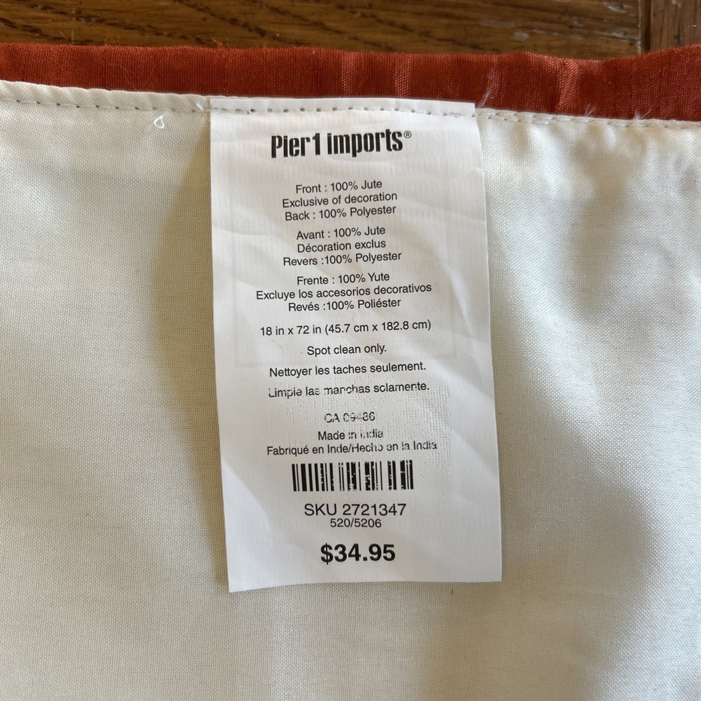 New with tags Pier 1 Imports table runner, 18" x 72", excellent condition.