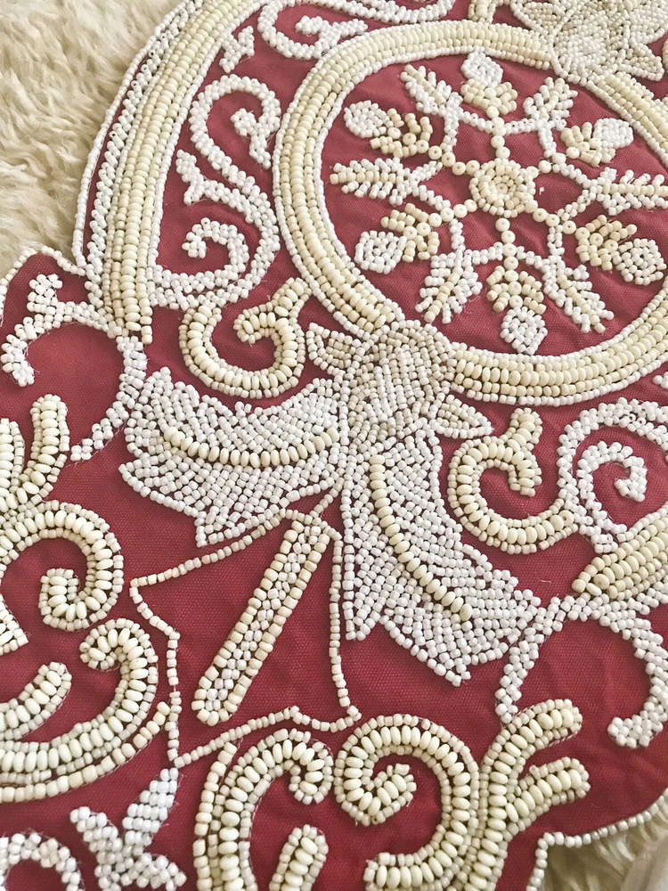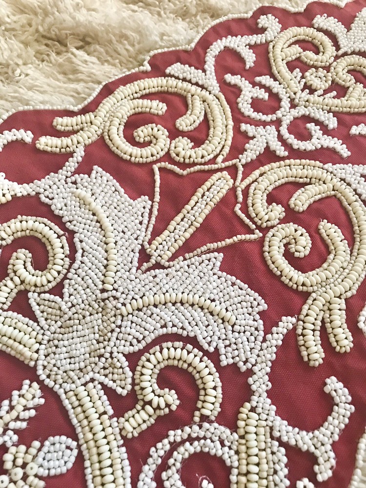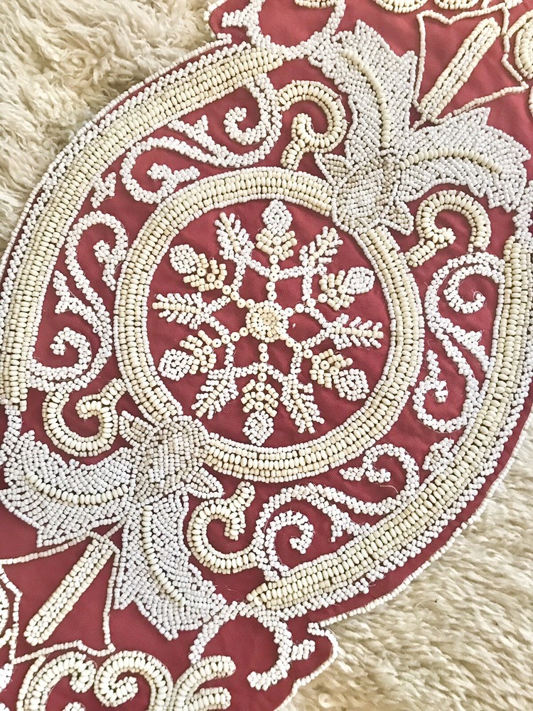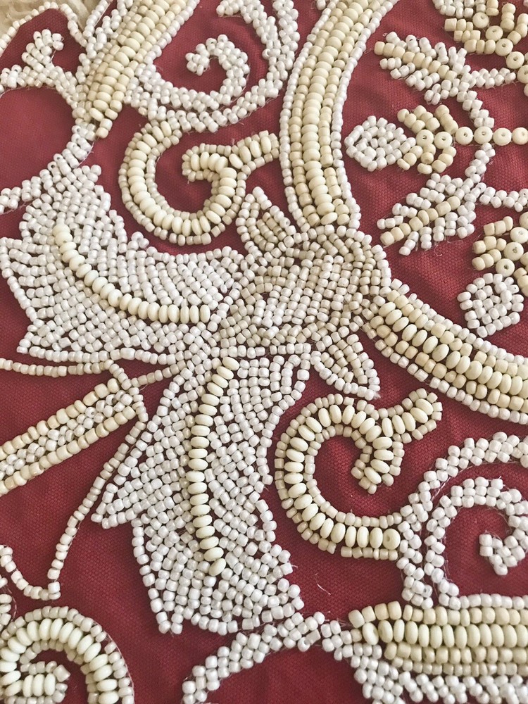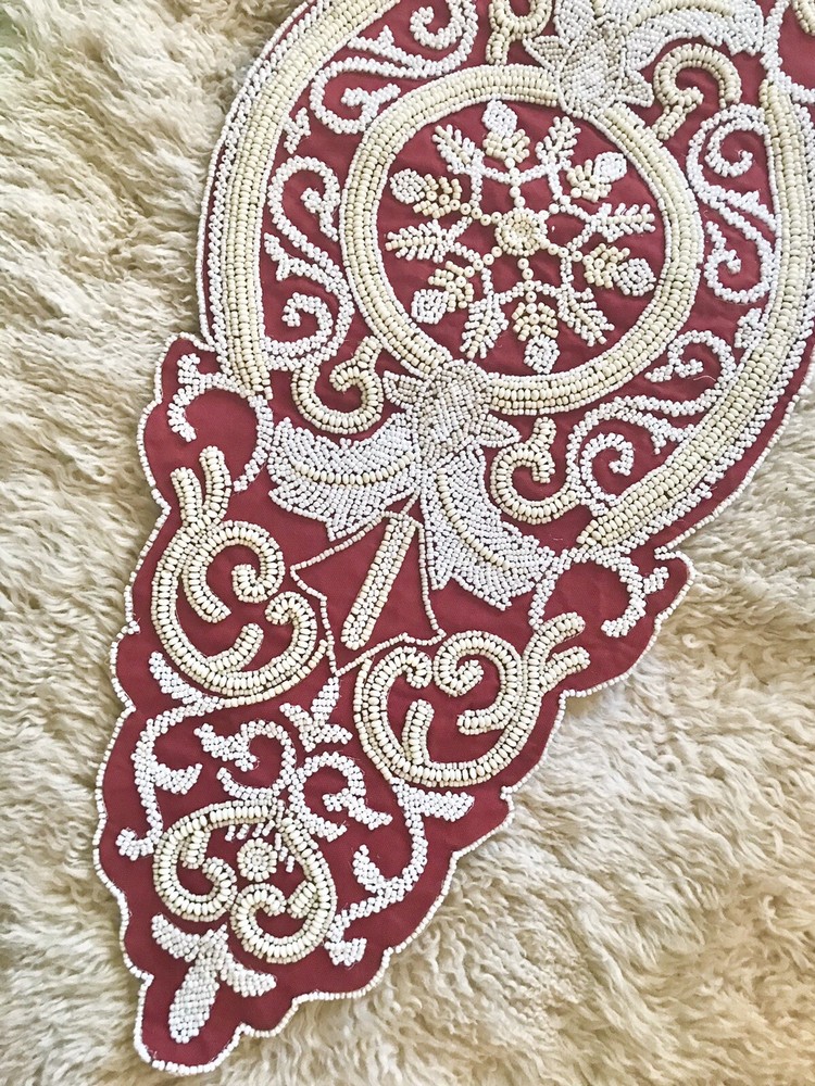 BRAND NEW PIER 1 BY WORLD MARKET MEDALLION RED/BEIGE/WHITE BEADED 13 X36 " TABLE RUNNER Sorry, no Returns, Exchange or International shipping... PLEASE CHECK MY OTHER EBAY ITEMS!!! HAPPY BIDDING!!!...