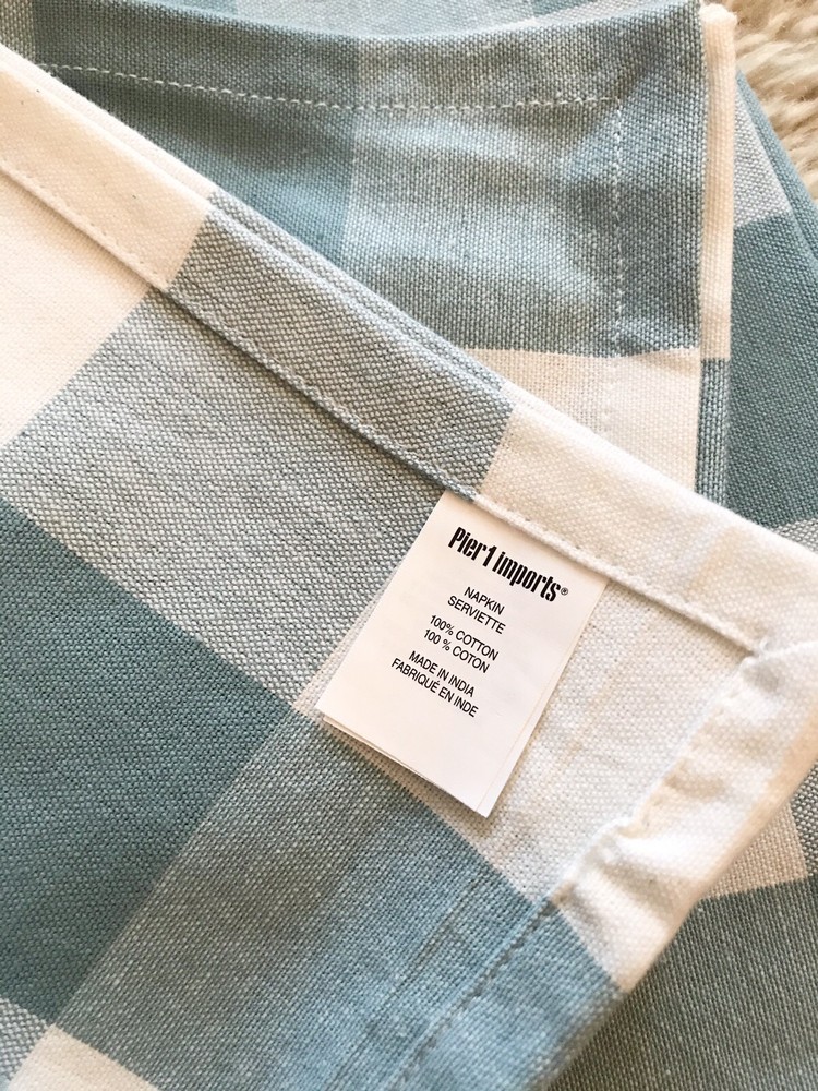 BRAND NWT PIER 1 IMPORTS SET OF 4 PC BUFFALO CHECK BLUE COLOR CLOTH 100% COTTON NAPKINS SORRY, NO EXCHANGE, RETURN OR INTERNATIONAL SHIPPING... PLEASE, CHECK MY OTHER ITEMS FOR SALE! HAPPY BIDDING!!!