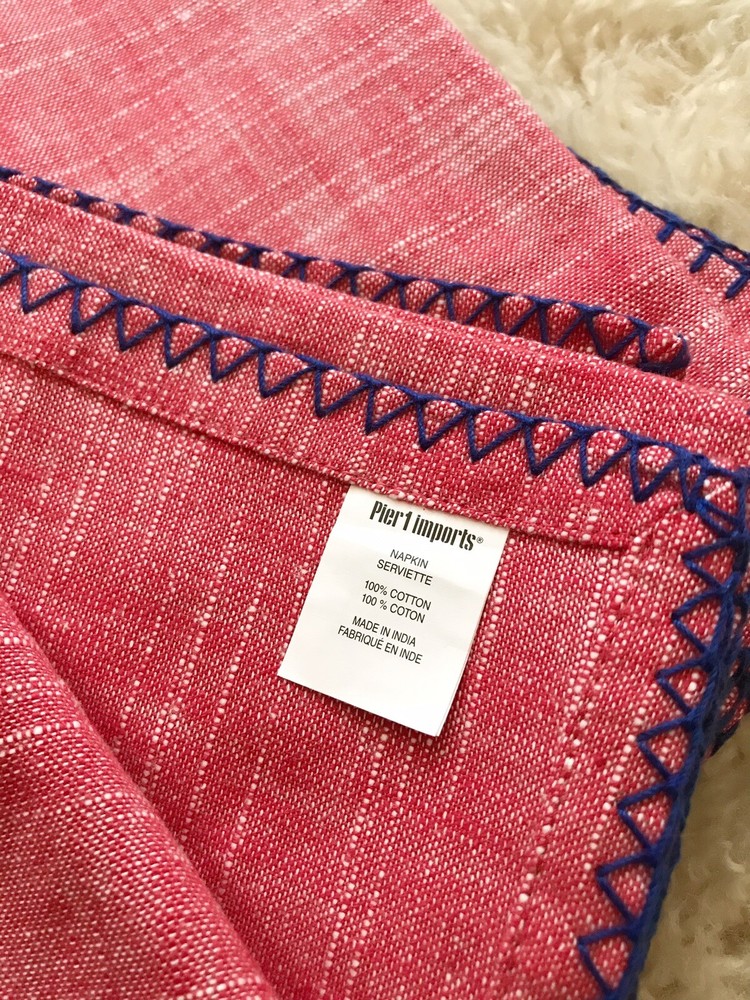 BRAND NWT PIER 1 IMPORTS SET OF 6 PC RED STITCHED CLOTH NAPKINS SORRY, NO EXCHANGE, RETURN OR INTERNATIONAL SHIPPING... PLEASE, CHECK MY OTHER ITEMS FOR SALE! HAPPY BIDDING!!!