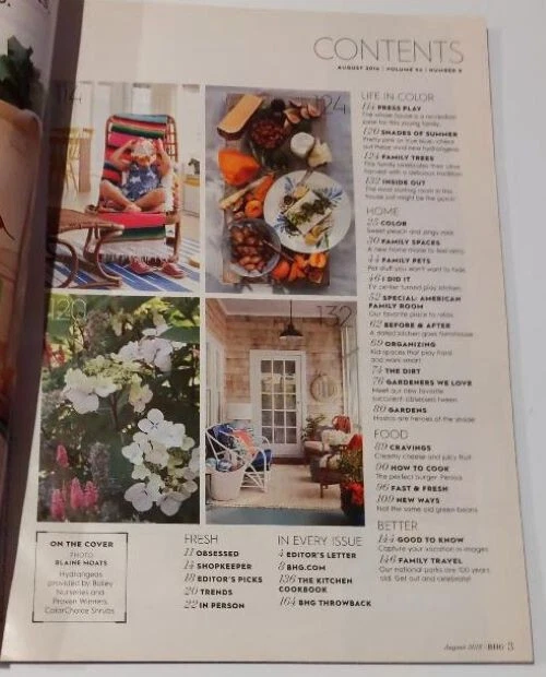 Better Homes and Gardens magazine offers home design, food and entertaining, garden, and lifestyle topics. It’s published by Meredith. This August 2016 issue has 164 pages and measures 8 by 11½ inches. Its newsstand price was $3.99. This gently used issue is in perfect condition.