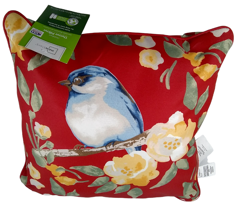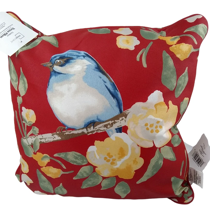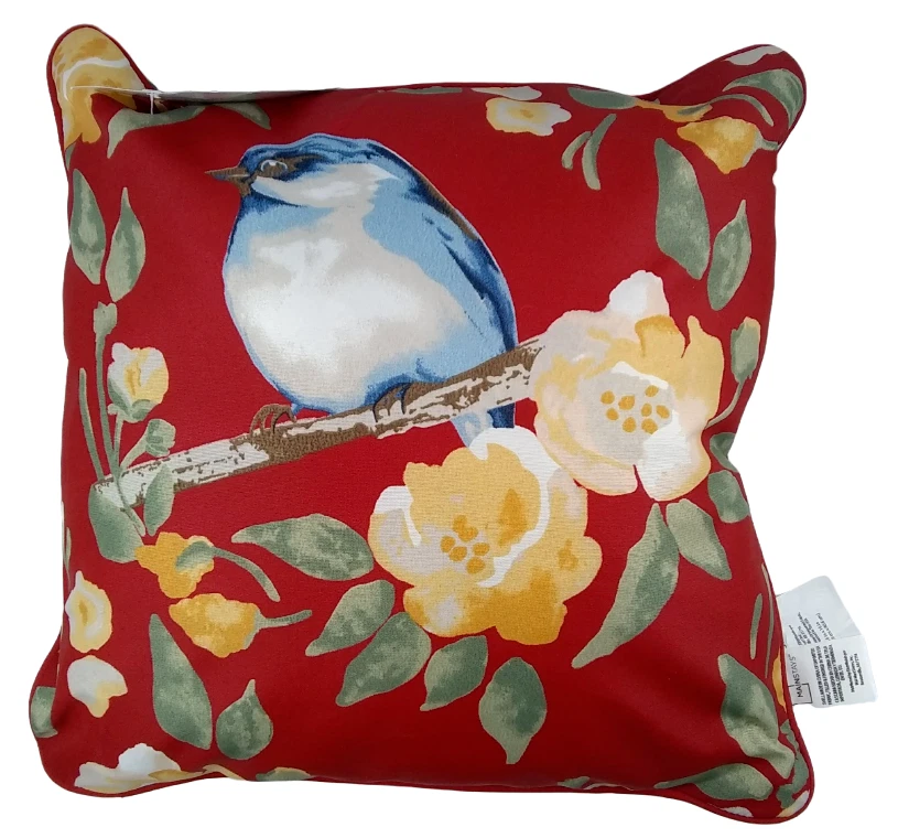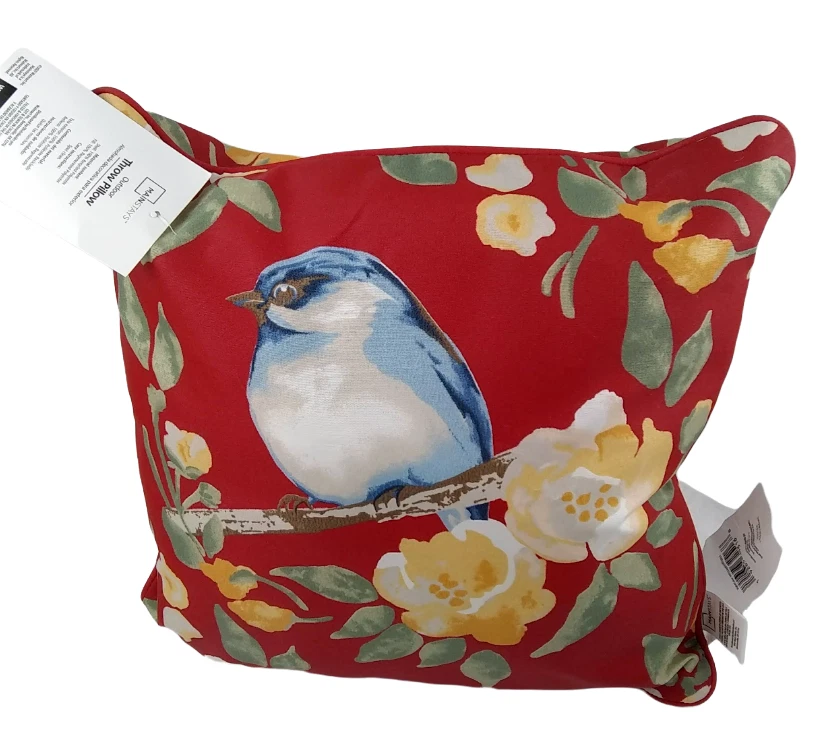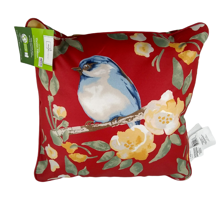 See condition above:NWT up for considerations is One (1): Blue Bird sitting on Branch with Flowers image: Bird(front) & Flowers(back) zipper/Zips-up Brand: Mainstays Description: Backyard Bird / Floral Design Item: Outdoor/Indoor Throw Pillow info: Double-sided with zip Year: 2021 size approximate: 16(L)x16(w)x5(h) inches Color: Red, Blue, etc... material: 100% Polyester p/n: MSS246835016091 upc:192658325168 care instructions: Surface wash only with soapy water finished in USA, imported fabric, shell made in China, Shipping Method: If you have any questions, please do not hesitate to message me. Thank You! Seller info only below: item location: RM1 B-7