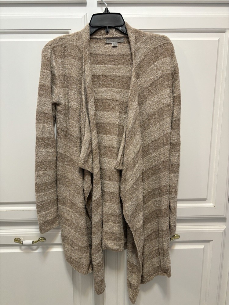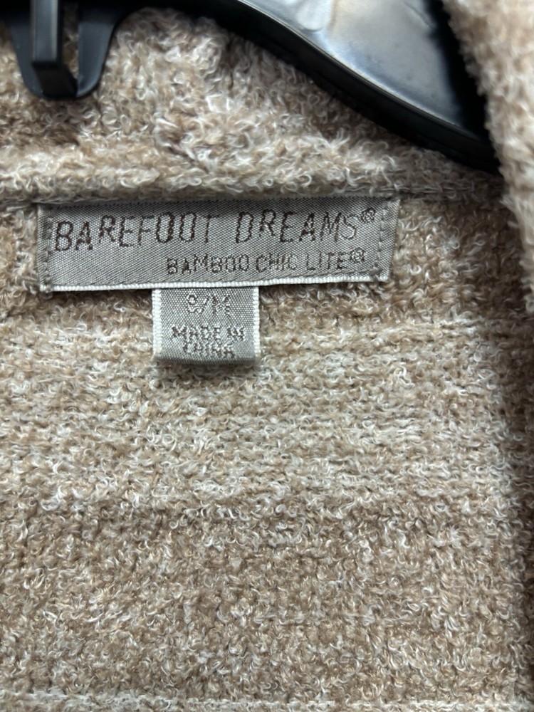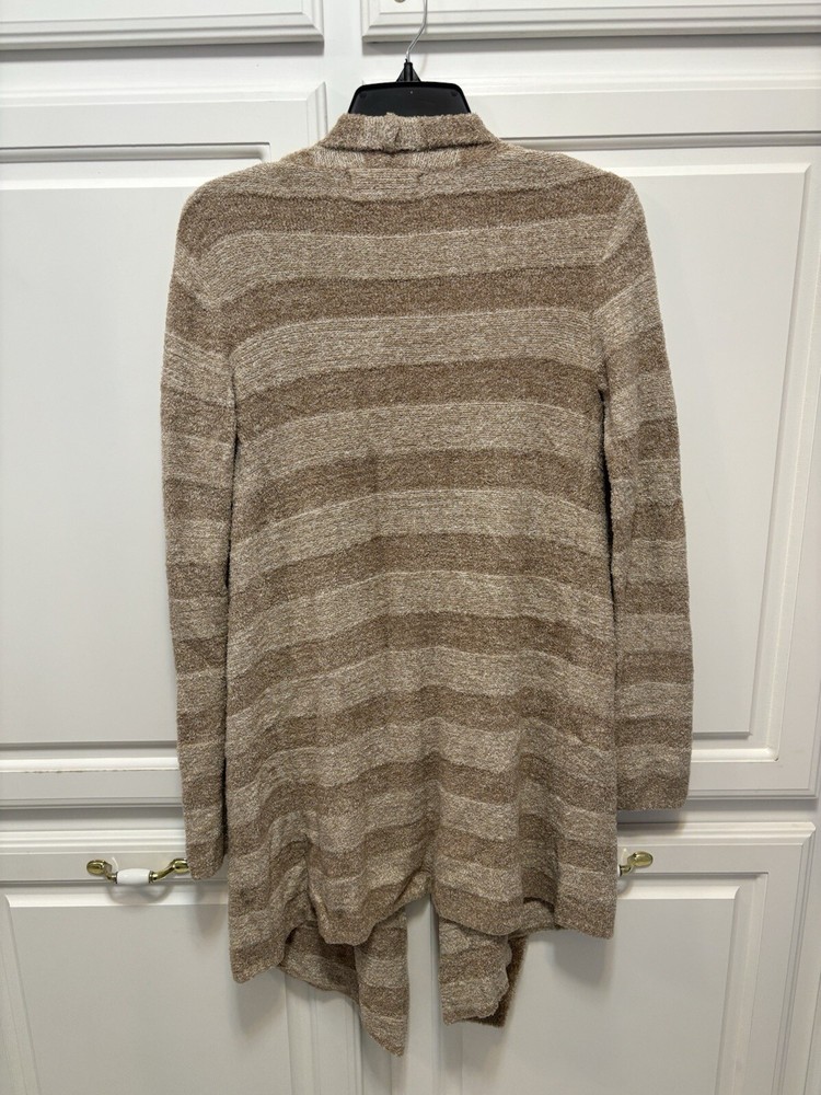 Barefoot Dreams Bamboo Chic Lite Cream Tan Stripe Waterfall Open Cardigan Size S/M 80% nylon 20% rayon from bamboo Soft and cozy Very good condition. No tears, stains or holes Smoke/pet free 16.5” underarm to underarm 31” length D1203