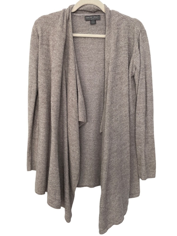 Barefoot Dreams Bamboo Chic Lite Open Front Cardigan Size Small/Medium Cozy Knit This cardigan offers a blend of softness and comfort with its Bamboo Chic Lite knit. Designed with an open front, it provides a versatile and elegant layering option for cooler days. • Open front with draped design • Long sleeve • Knit construction • 75% Nylon 25% Rayon from Bamboo • Machine washable for easy care Length = 36 inches neutral knitwear casual classic comfortable relaxed fall winter warm knit cozy comfy loungewear everyday closet staple modern essentials daily