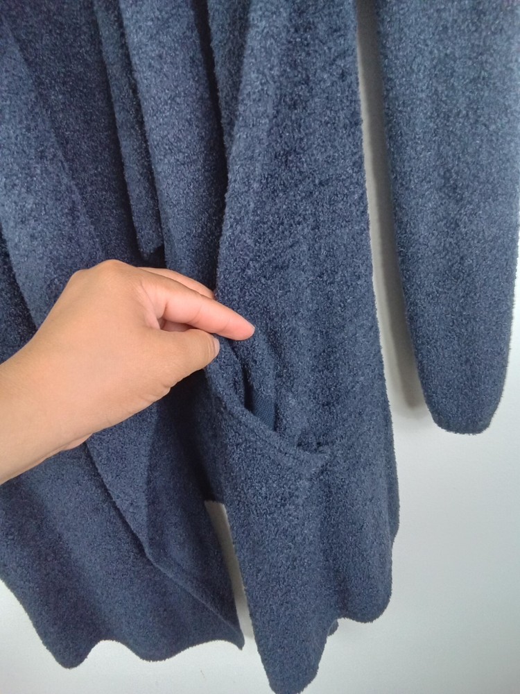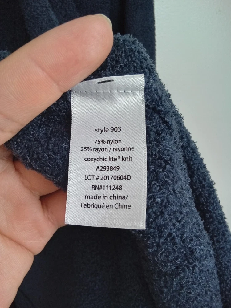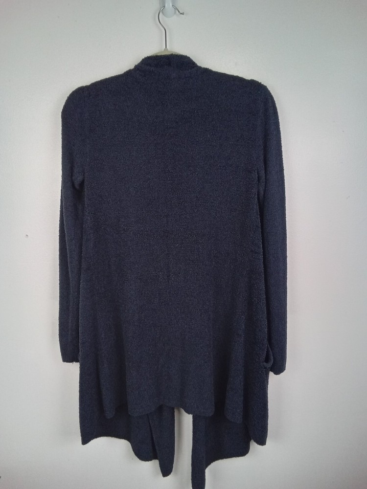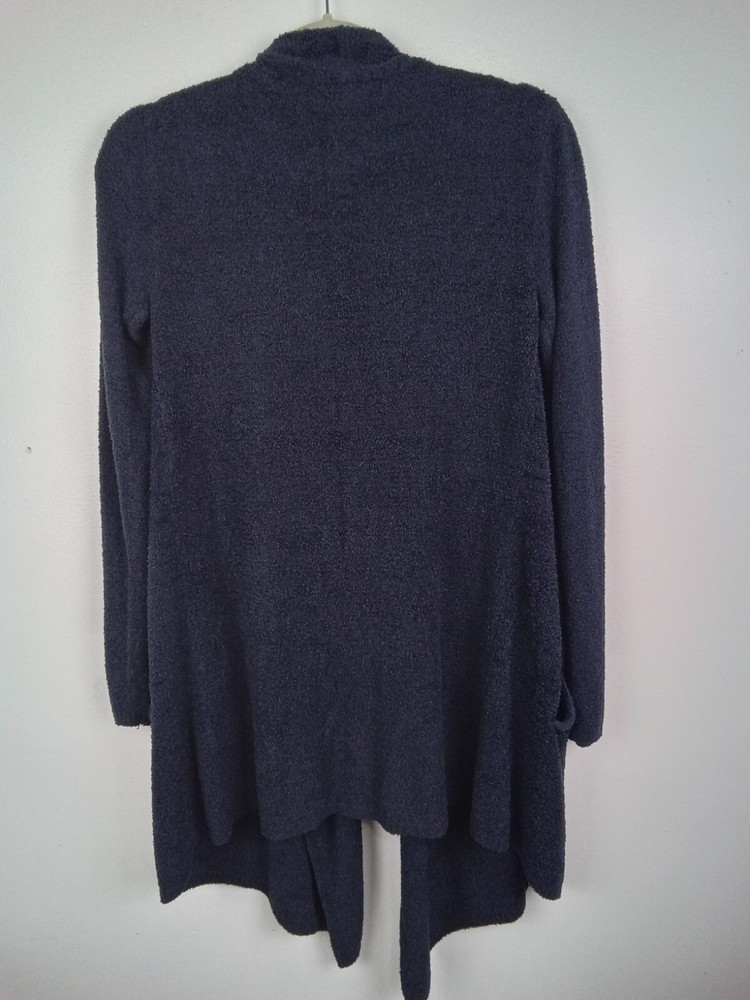 Women’s Barefoot Dreams Cozy Chic Lite Knit Dark Navy Blue Cardigan Size S/M. Size: Small / Medium Color: Navy Blue Style 903 Super soft and cozy cardigan sweater 75% Nylon, 25% Rayon In very good pre owned condition Approximate Measurements: Armpit to armpit: 22" Shoulder to hem: 39" cozy, comfort, lounge, outdoor, S3250-0425