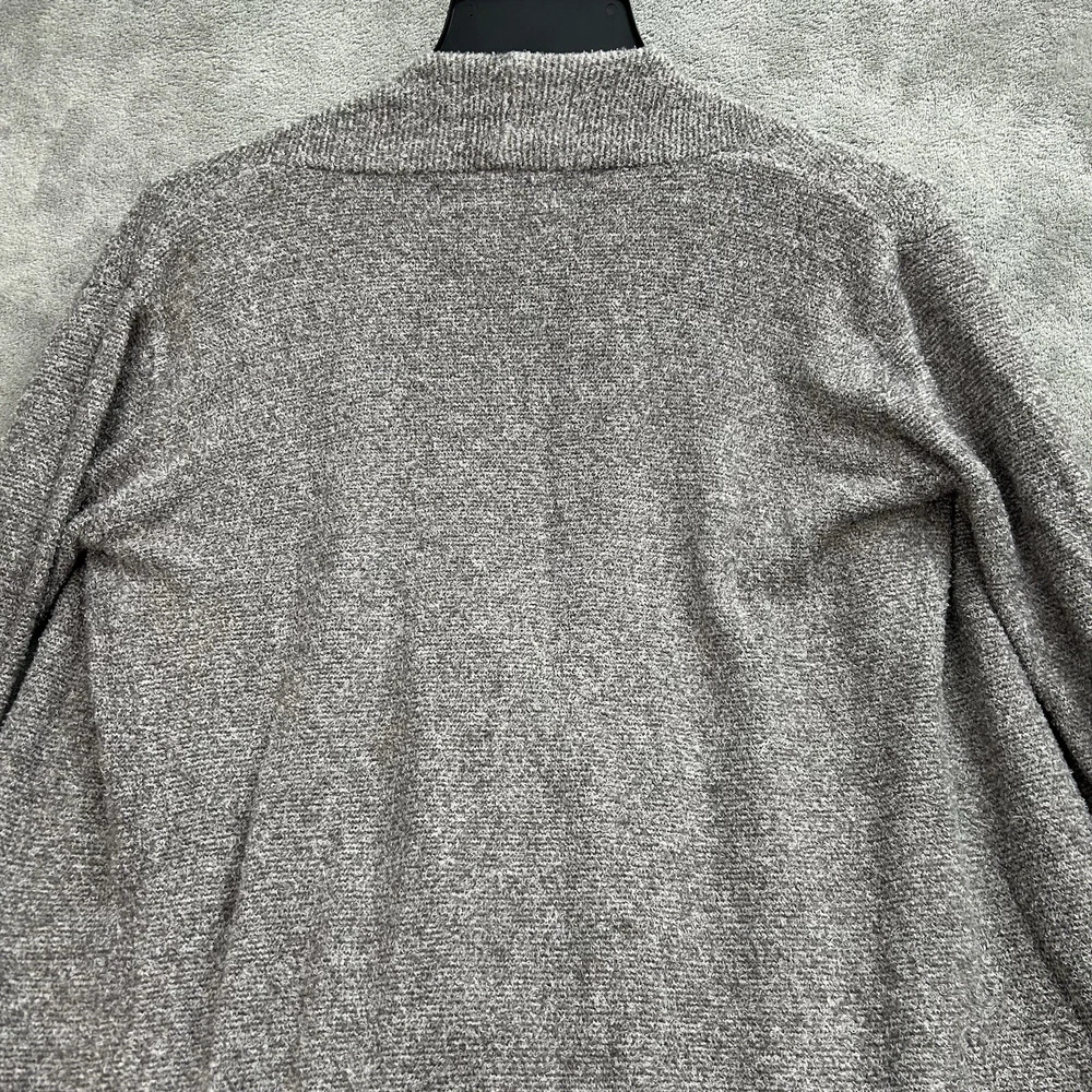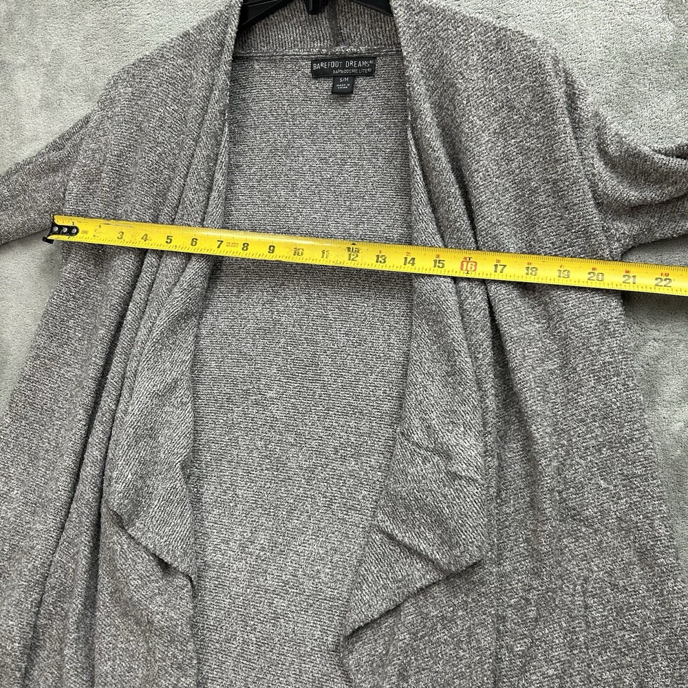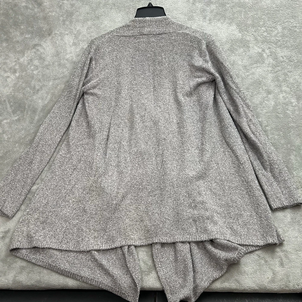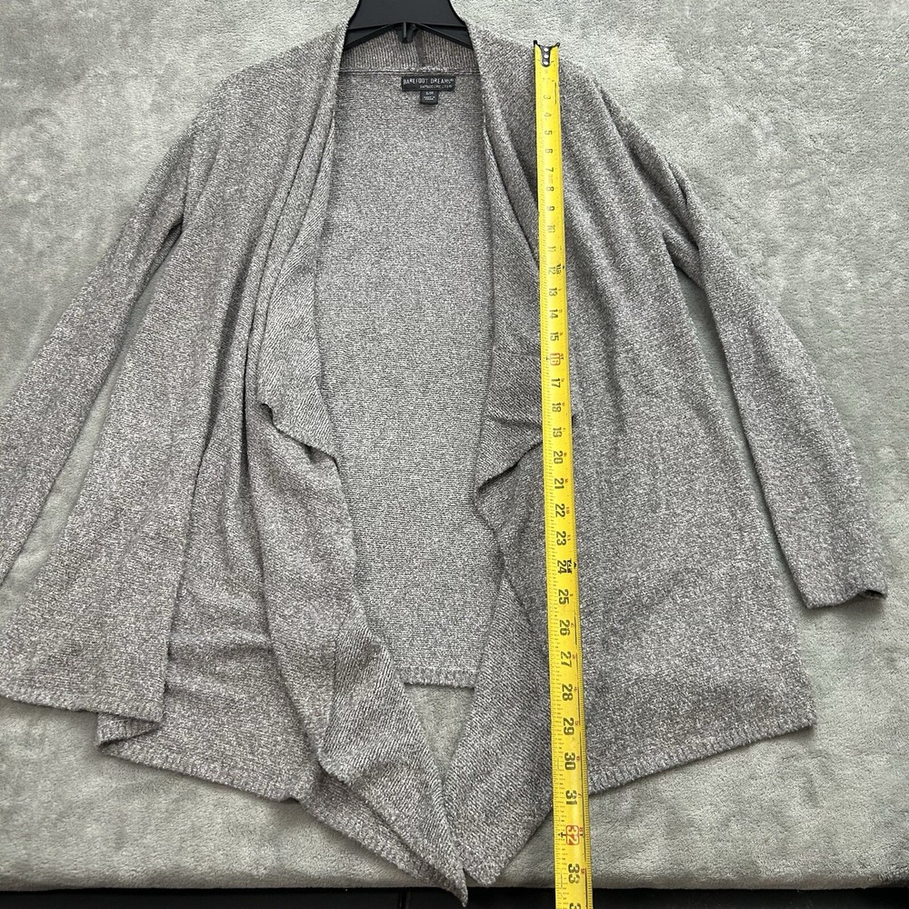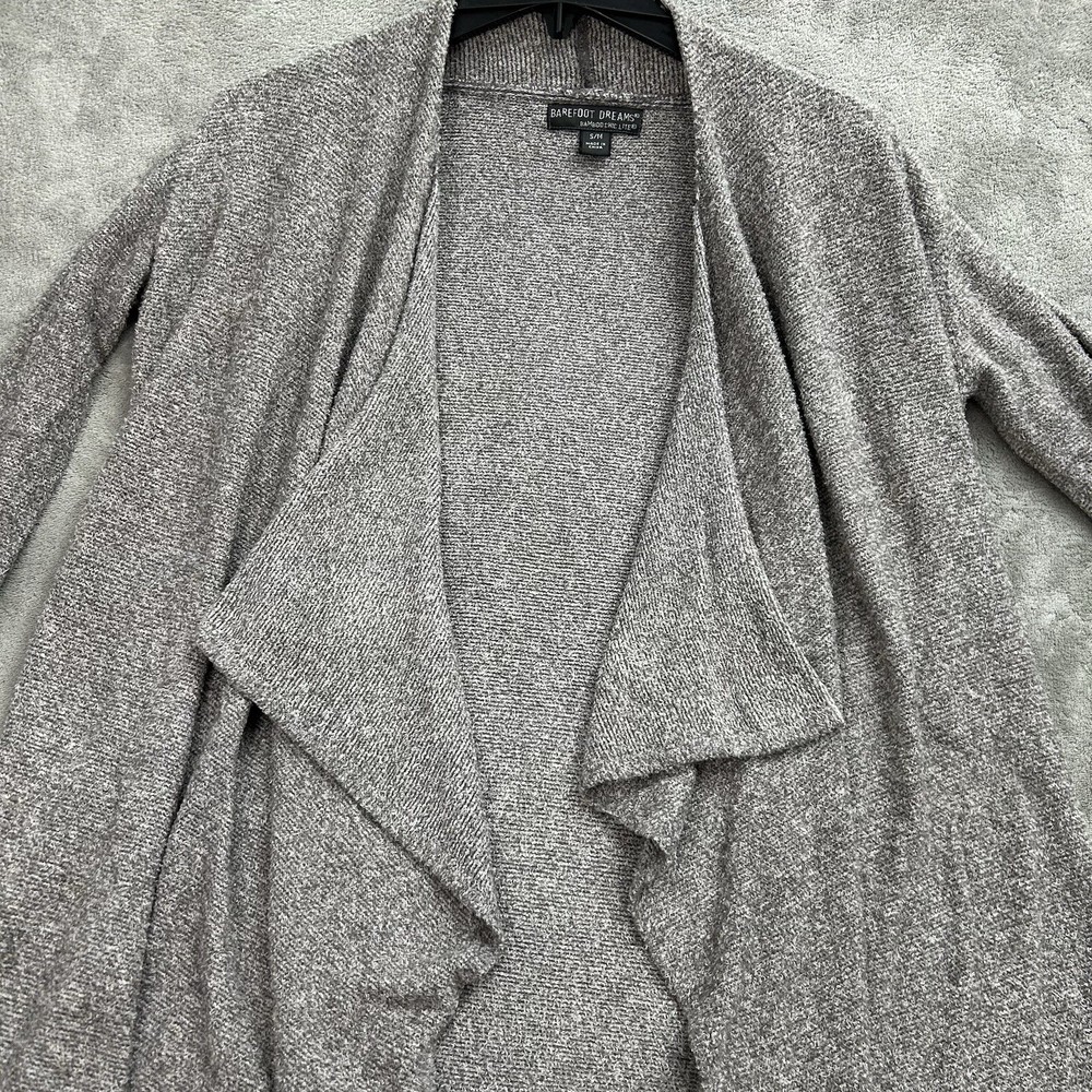 Elevate your wardrobe with this chic and cozy Barefoot Dreams cardigan sweater. The gray color and solid pattern make it a versatile piece for any occasion, whether it's a casual day out, a workday, or a night on the town. The tight-knit fabric, made from a blend of nylon and rayon, is super soft and stretchy, ensuring a comfortable fit all day long.