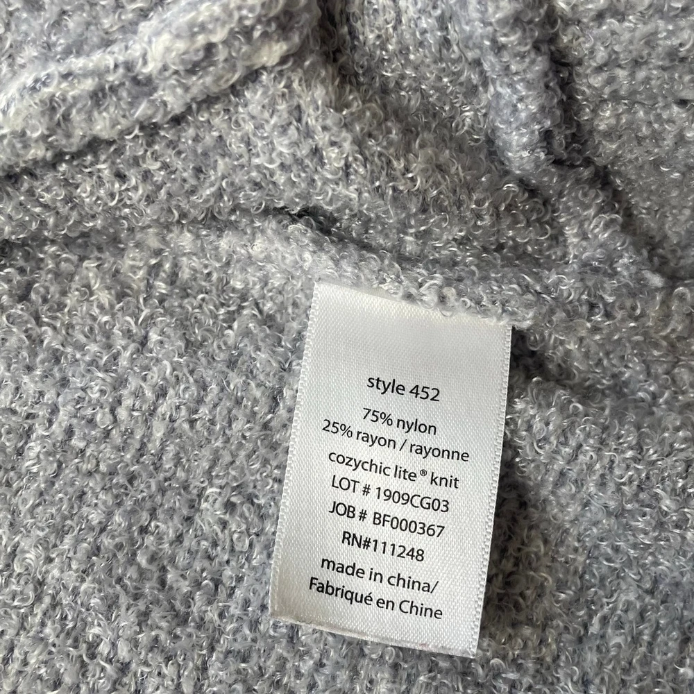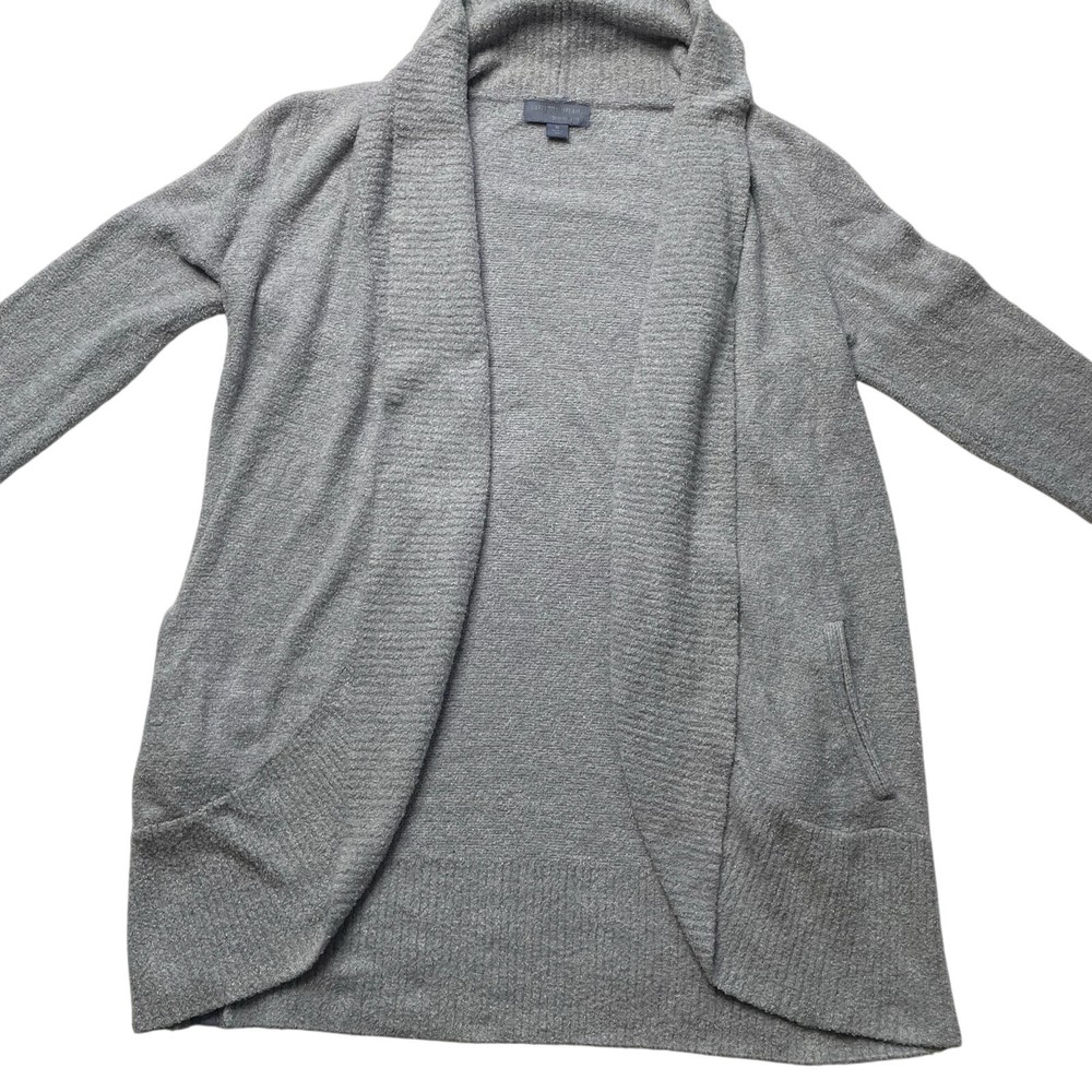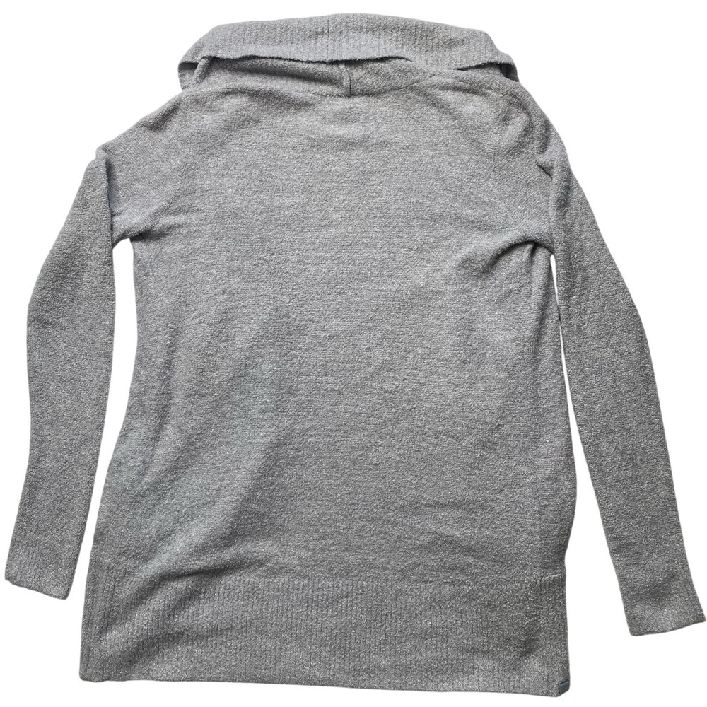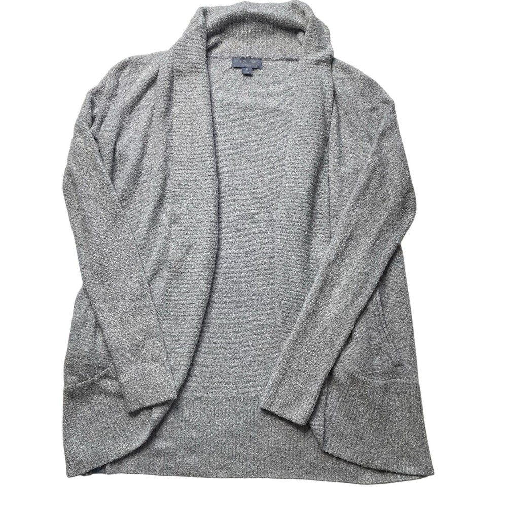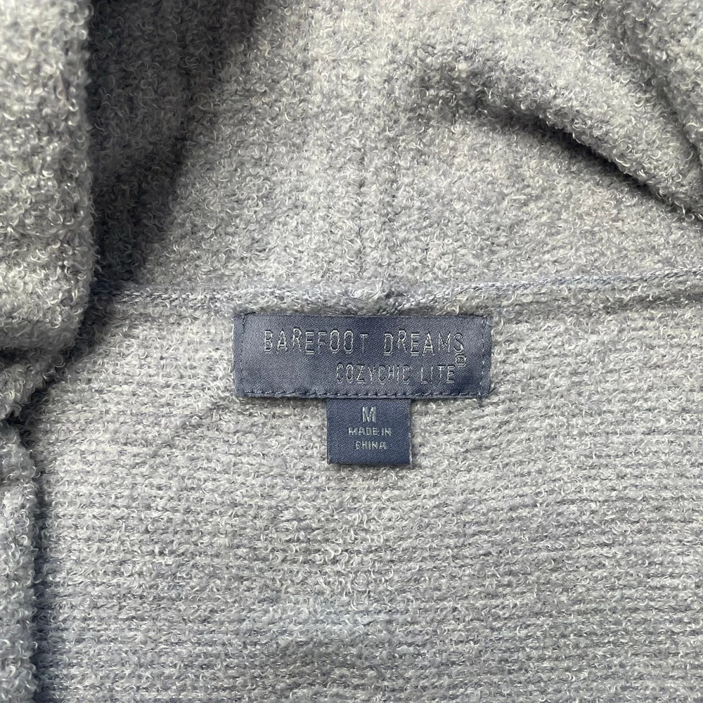 <![CDATA[<div>Barefoot Dreams Cozy Chic circle light gray cardigan sweater, size medium. Features a plush knit fabric, open front, patch pockets, and long sleeves. Good preowned condition. Has a small spot on the back of the left arm sleeve. Measurements Length: 30" Pit to pit: 20"