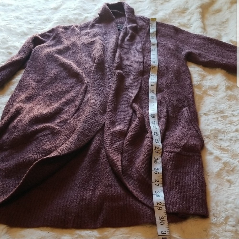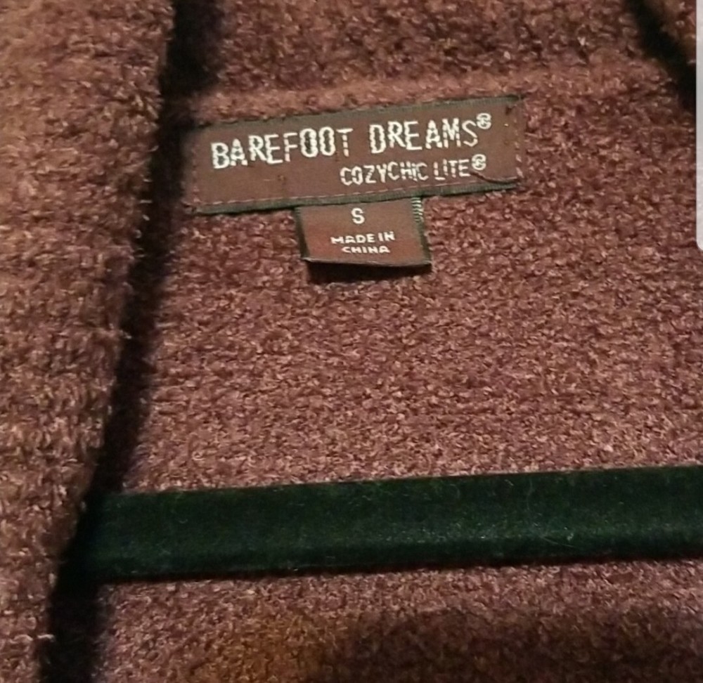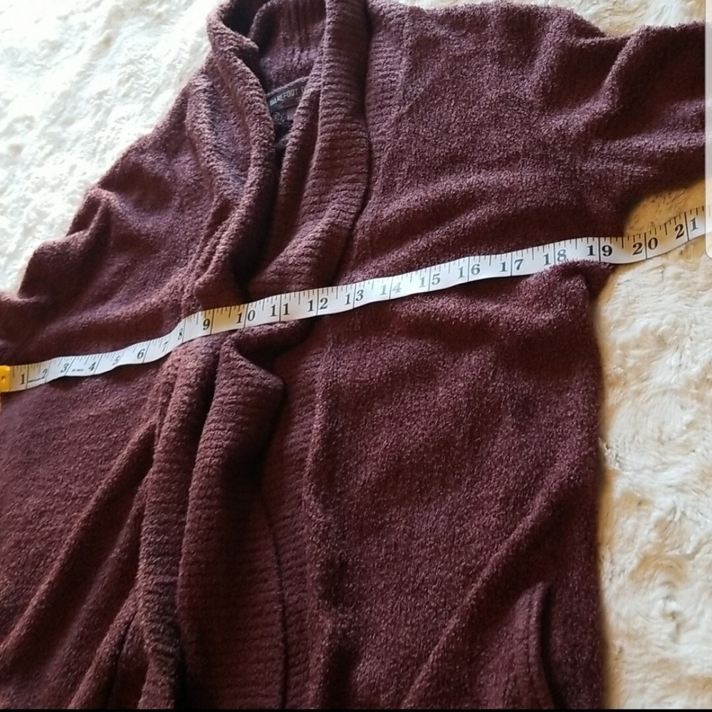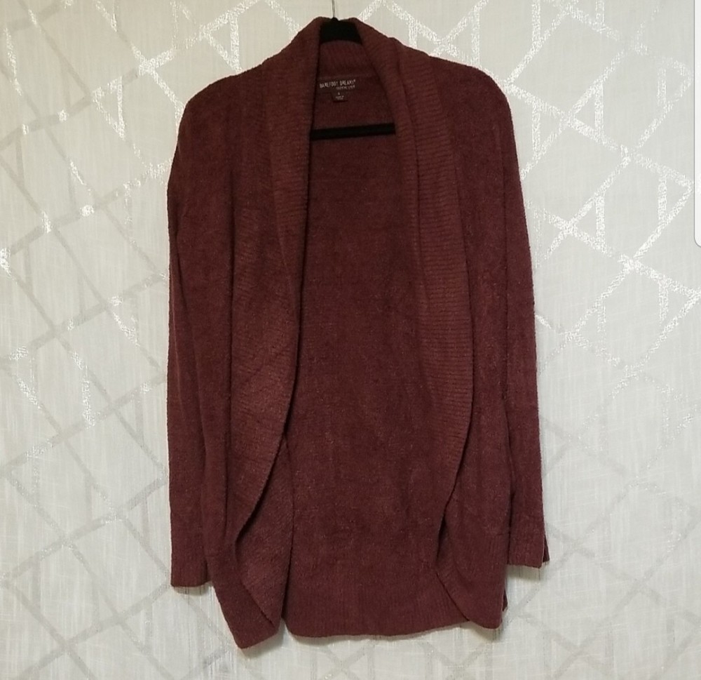 Barefoot Dreams Cardigan Sweater Size S Cozy Chic Lite Circle Cardigan Rosewood Purple Barefoot Dreams Cozy Chic Lite Circle Cardigan sweater . Size Small. Gorgeous Rosewood color. SO INCREDIBLY SOFT!!!! Excellent condition!!! THIS SWEATER RETAILS FOR $115. Barefoot Dreams feather soft Circle Cardigan is all about effortless style, featuring an easy, open-front design with two inset pockets and a cozy ribbed shawl collar. Shawl collar Long sleeves Open front Welt pockets Nylon/rayon Machine wash