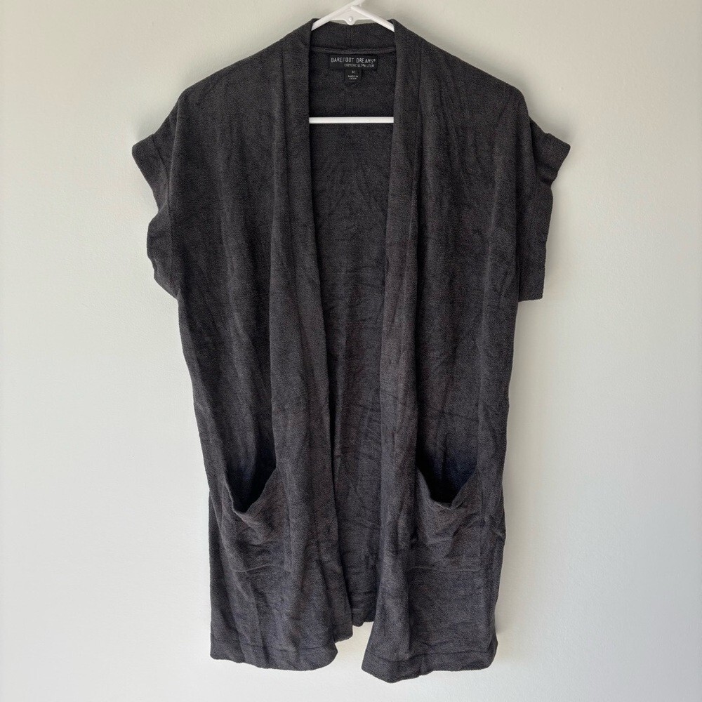 Barefoot Dreams Cozy Chic Ultra Lite Knit Sleeveless Open Front Cardigan Soft, fleece material. Pockets on the front with a long style. Size medium Approximate measurements: 34 inches long 19 inches armpit to armpit Casual Chic Versatile Athleisure Lounge