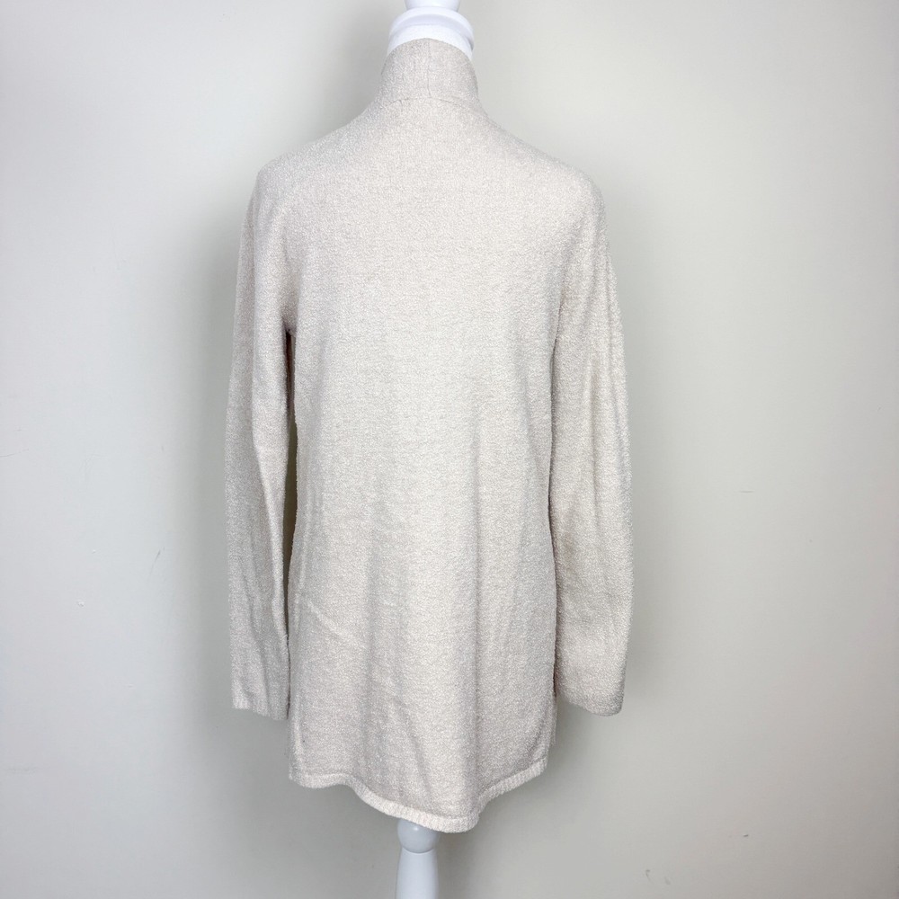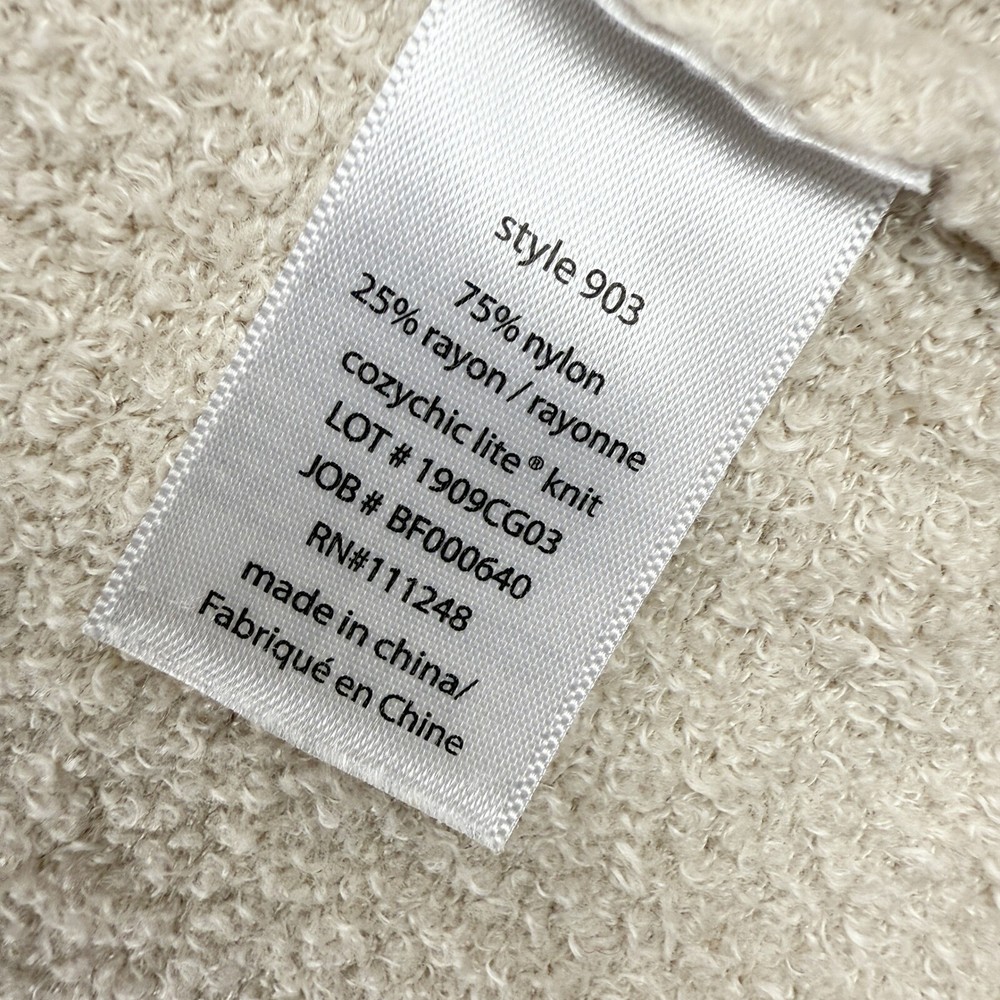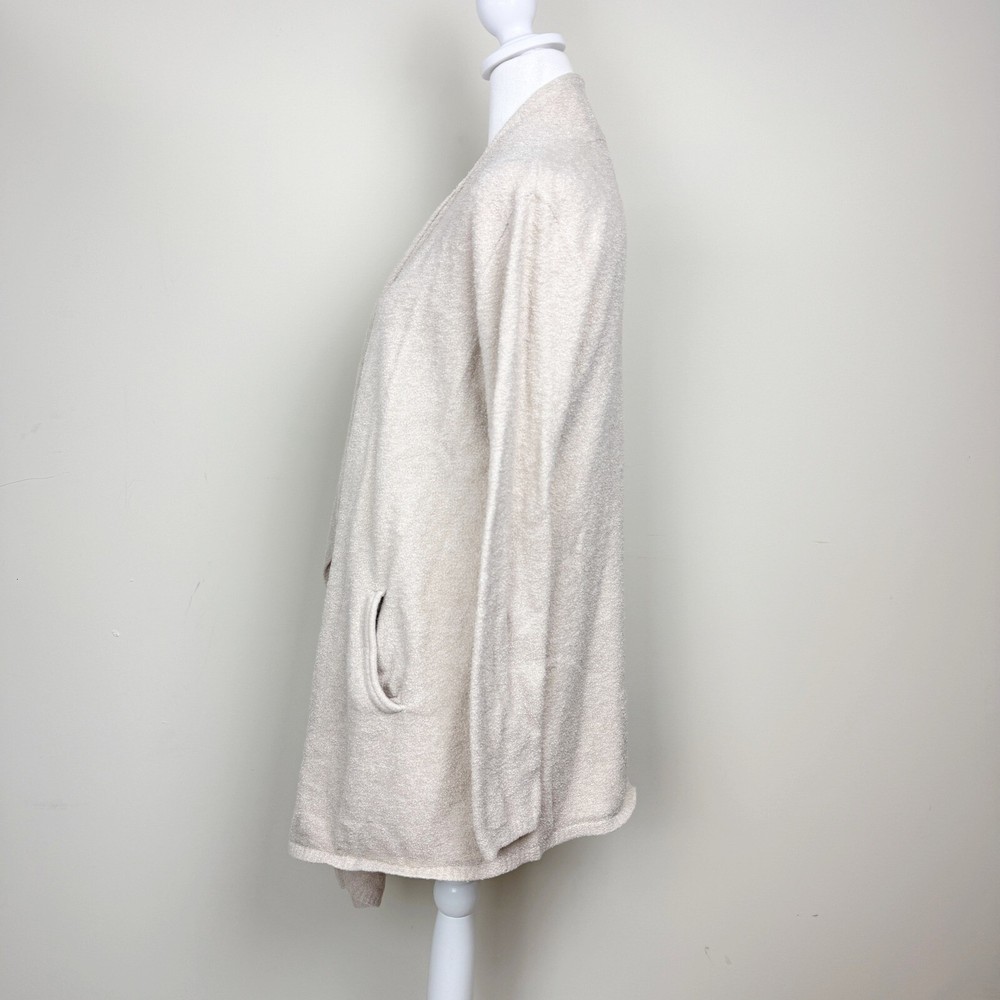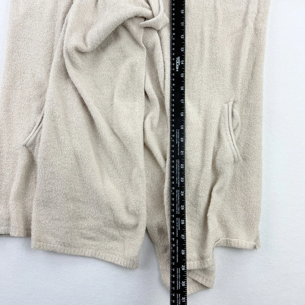 A Barefoot Dreams CozyChic Lite cardigan, perfect for layering and adding a touch of comfort to any outfit. This open-front sweater features a relaxed, draped silhouette with long sleeves and convenient patch pockets. The CozyChic Lite knit provides a soft, lightweight feel, making it ideal for year-round wear. Style: Cardigan Color: Beige Department: Women Type: Sweater Material: Nylon, Rayon Sleeve Length: Long Sleeve Pattern: Solid Features: Pockets, Open Front, Draped, Cozy Fabric Type: Knit Measurements: Pit to pit: 21 inhces Top to bottom: 31 inches