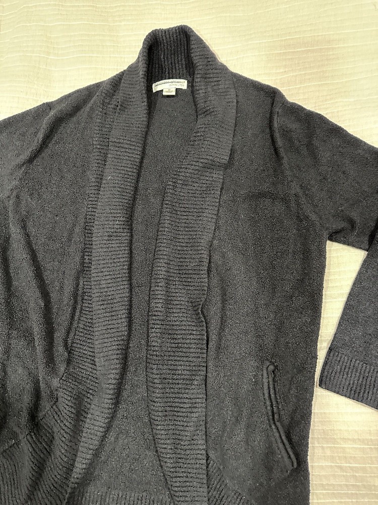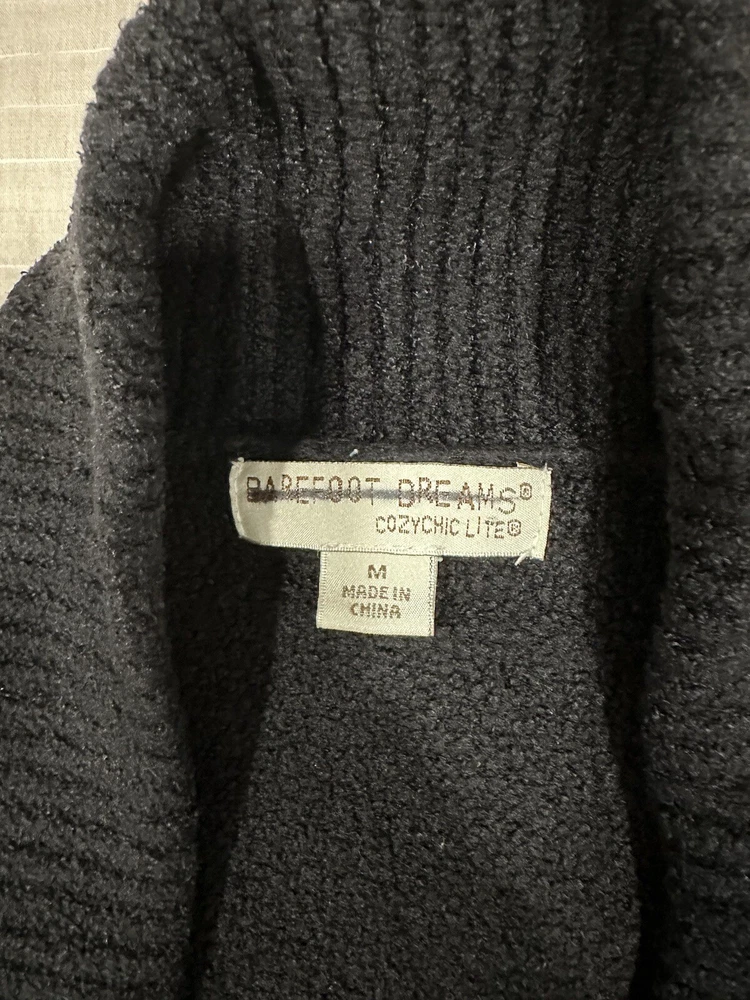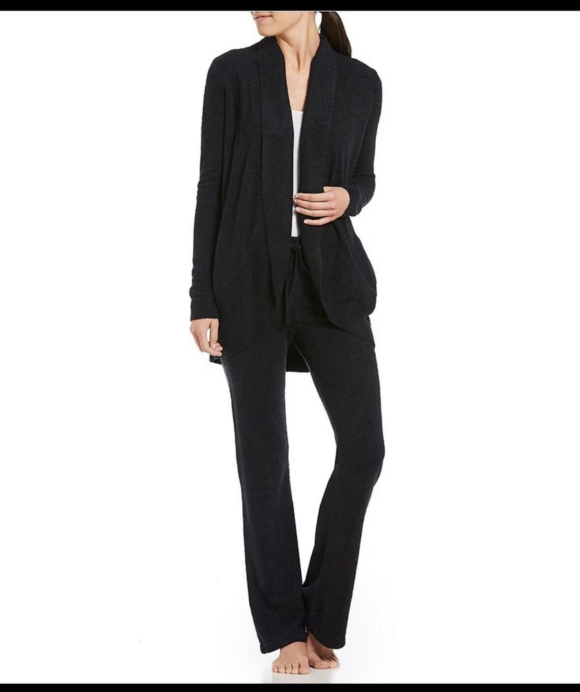 Extremely soft & plush cardigan From Barefoot Dreams, this lounge cardigan features: Plush lightweight knit fabrication Long sleeves Patch pockets Open front; no closure Approx. 32" length Nylon/rayon...