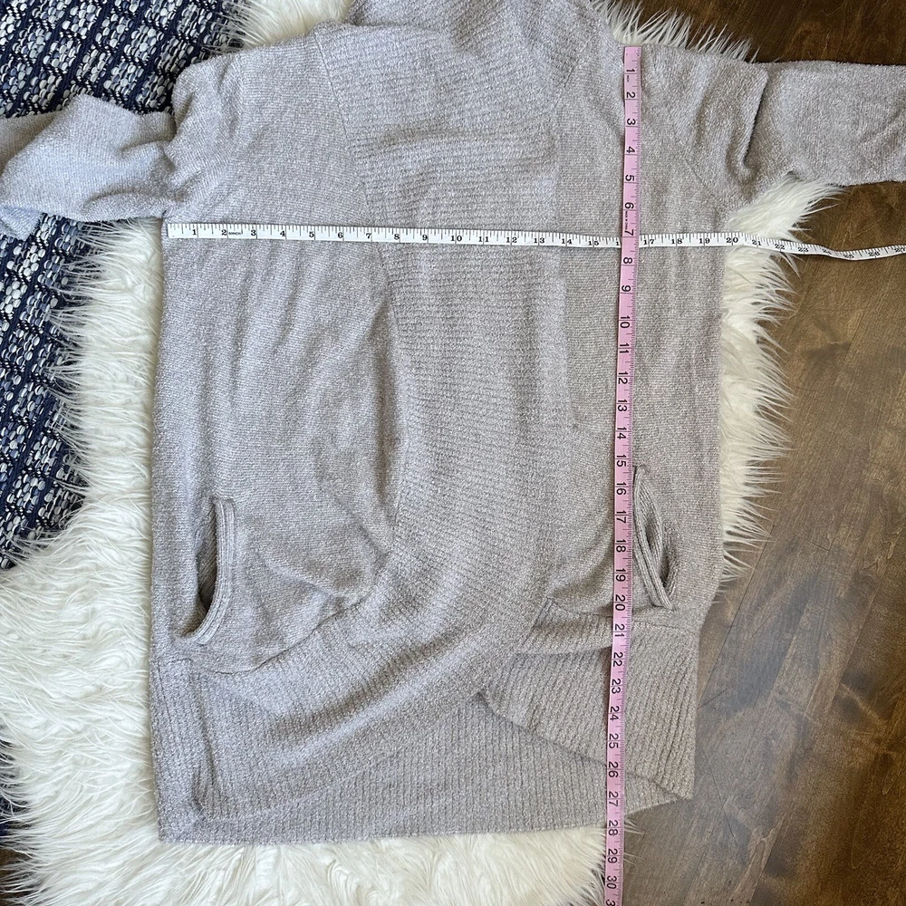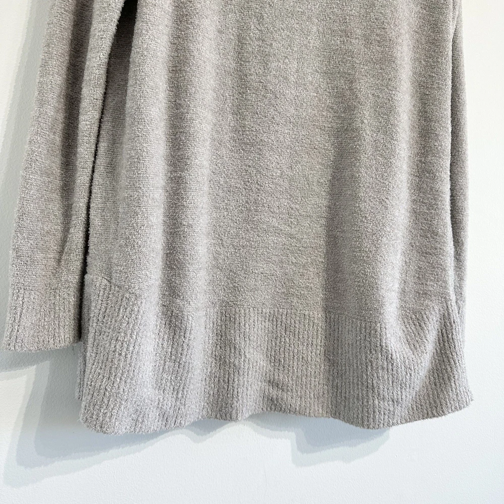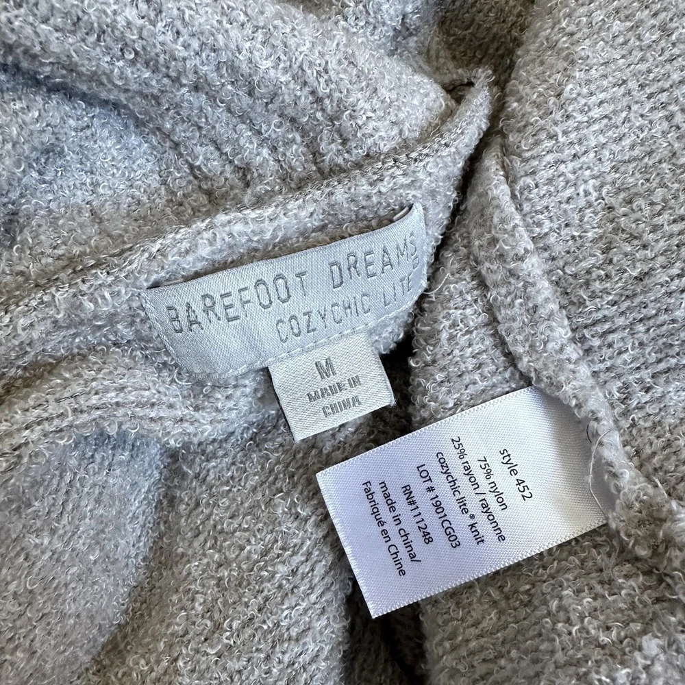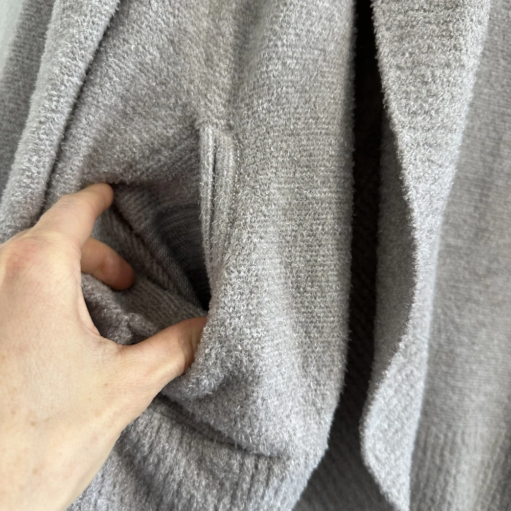 Long sleeve cardigan from barefoot dreams. Light pewter neutral color. Round circle style. Hand pockets, classic soft material. Open front. Super soft and plush. Great preowned condition. 75% nylon, 2...