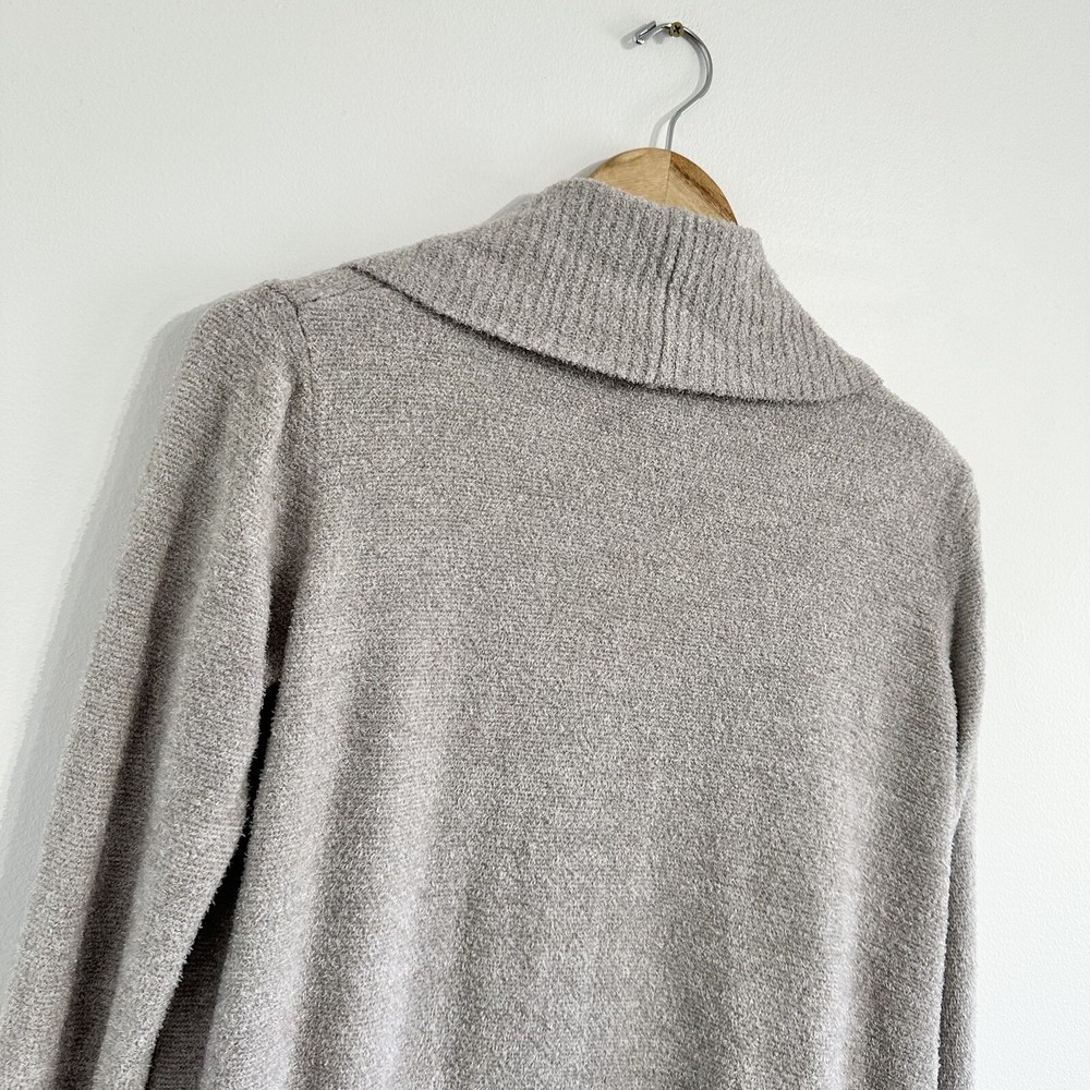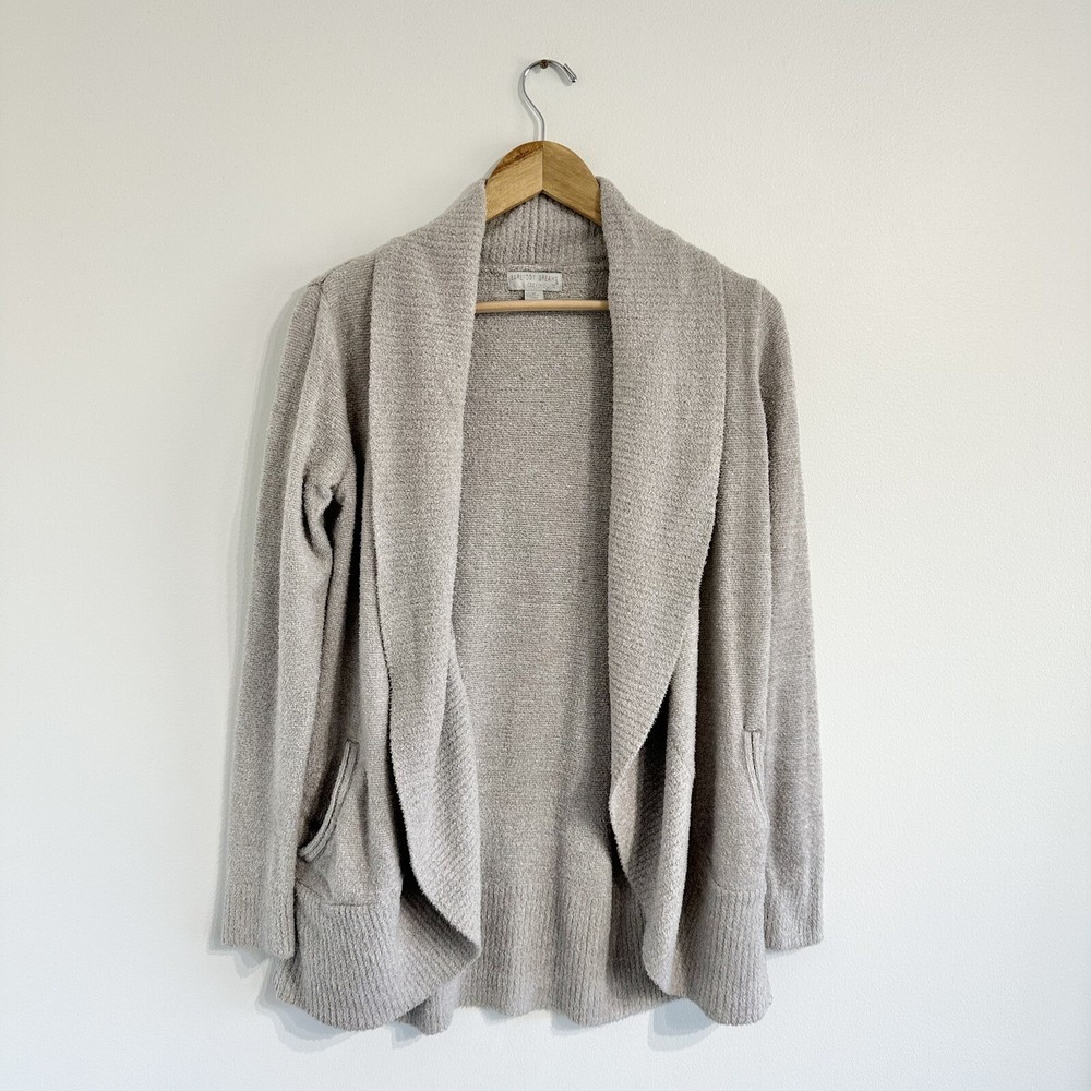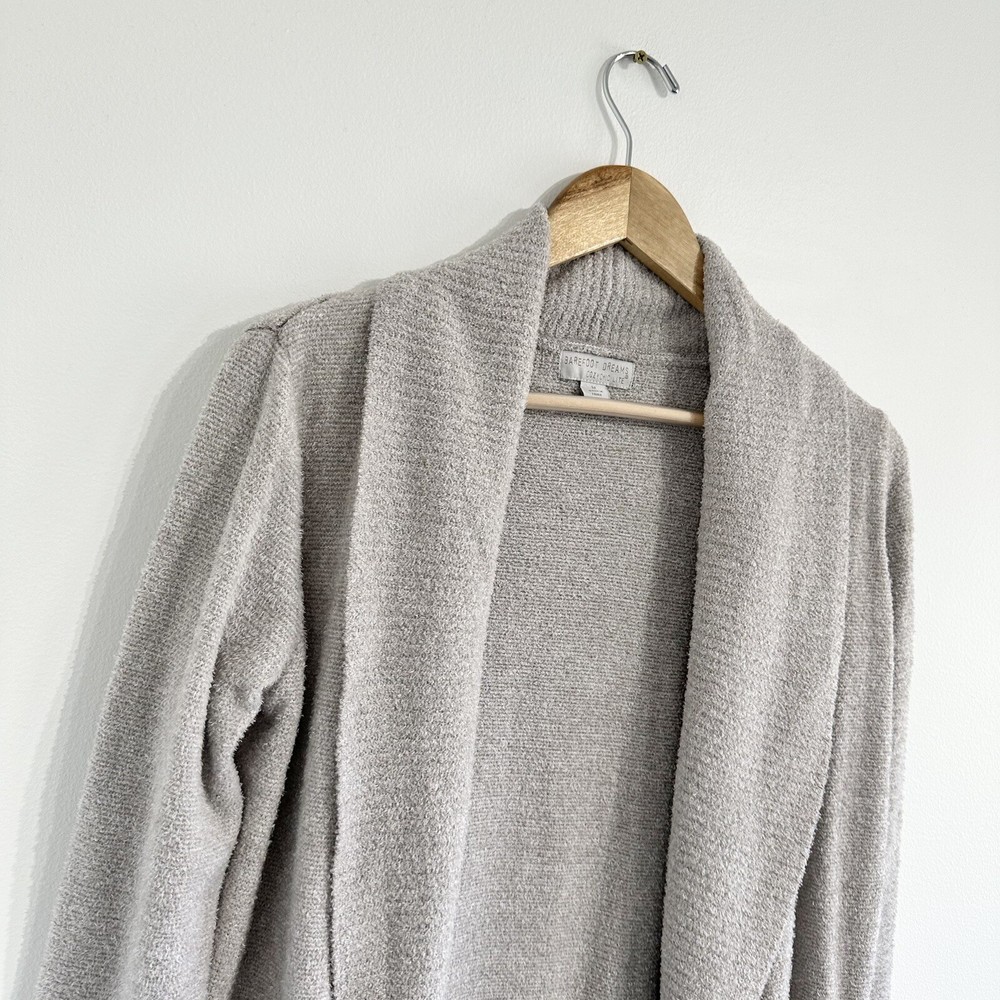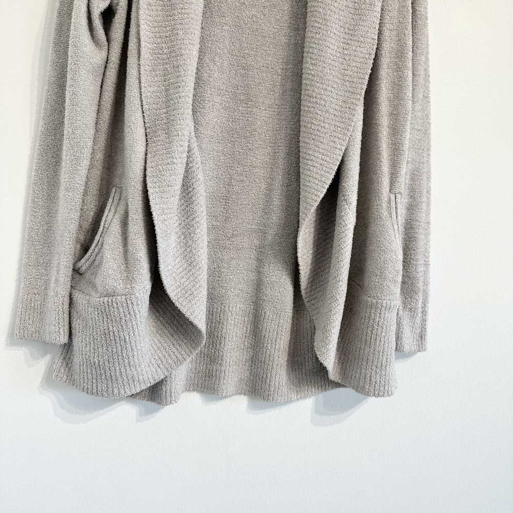 Long sleeve cardigan from barefoot dreams. Light pewter neutral color. Round circle style. Hand pockets, classic soft material. Open front. Super soft and plush. Great preowned condition. 75% nylon, 2...