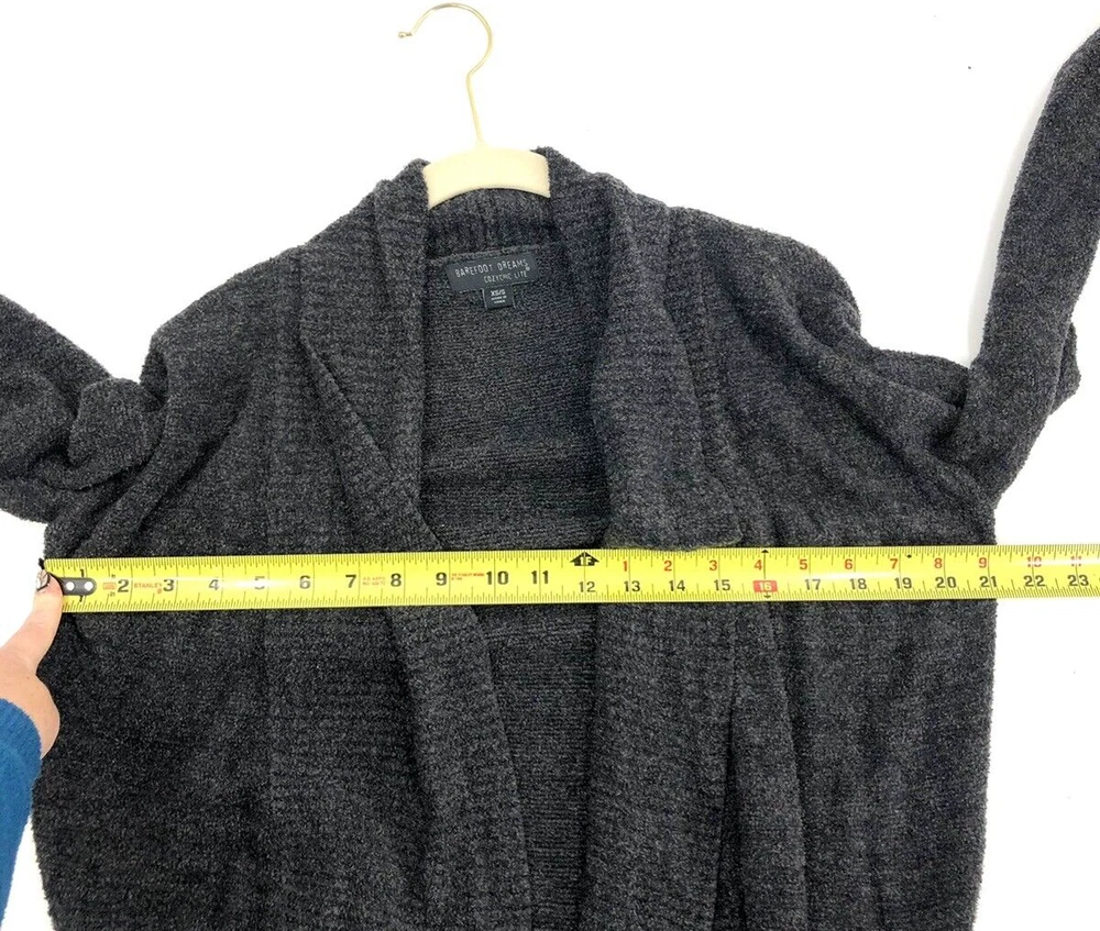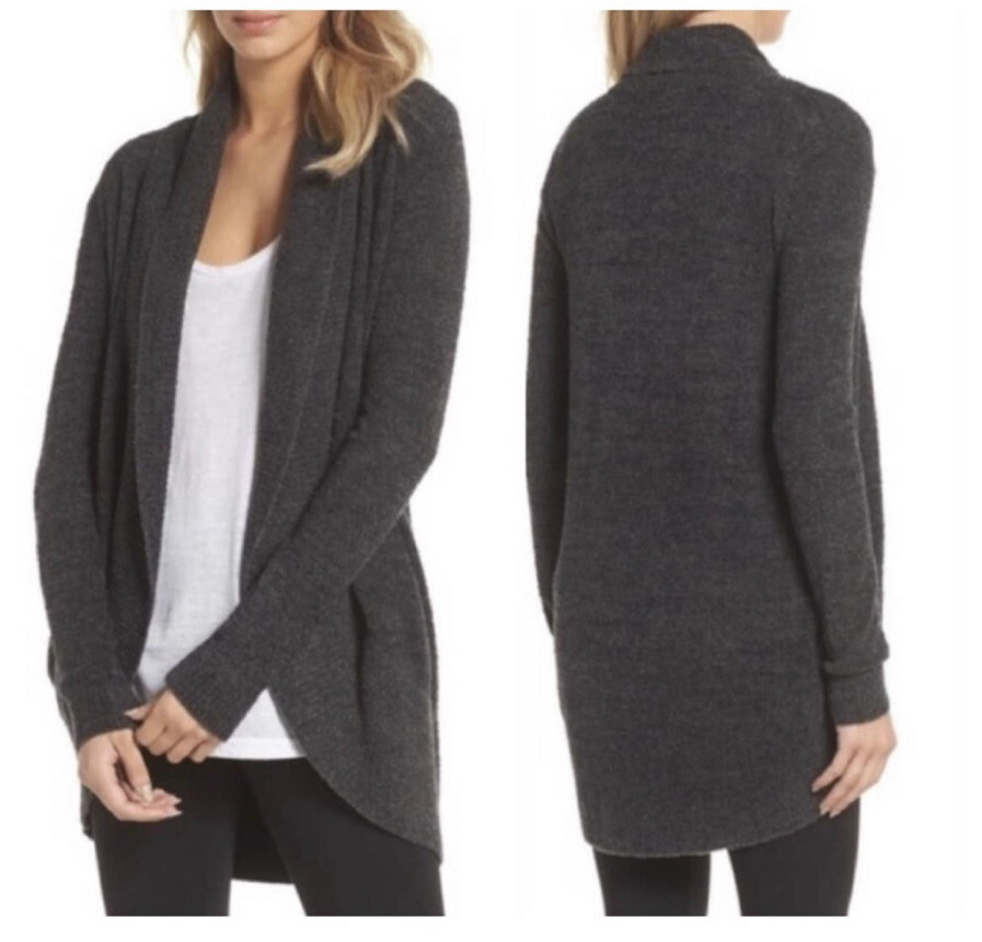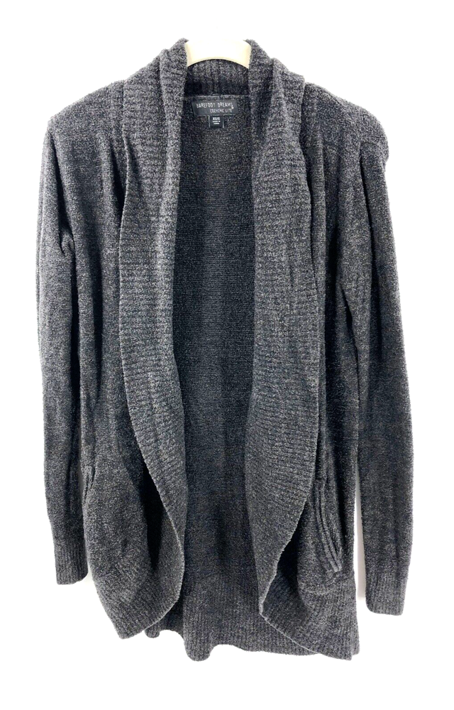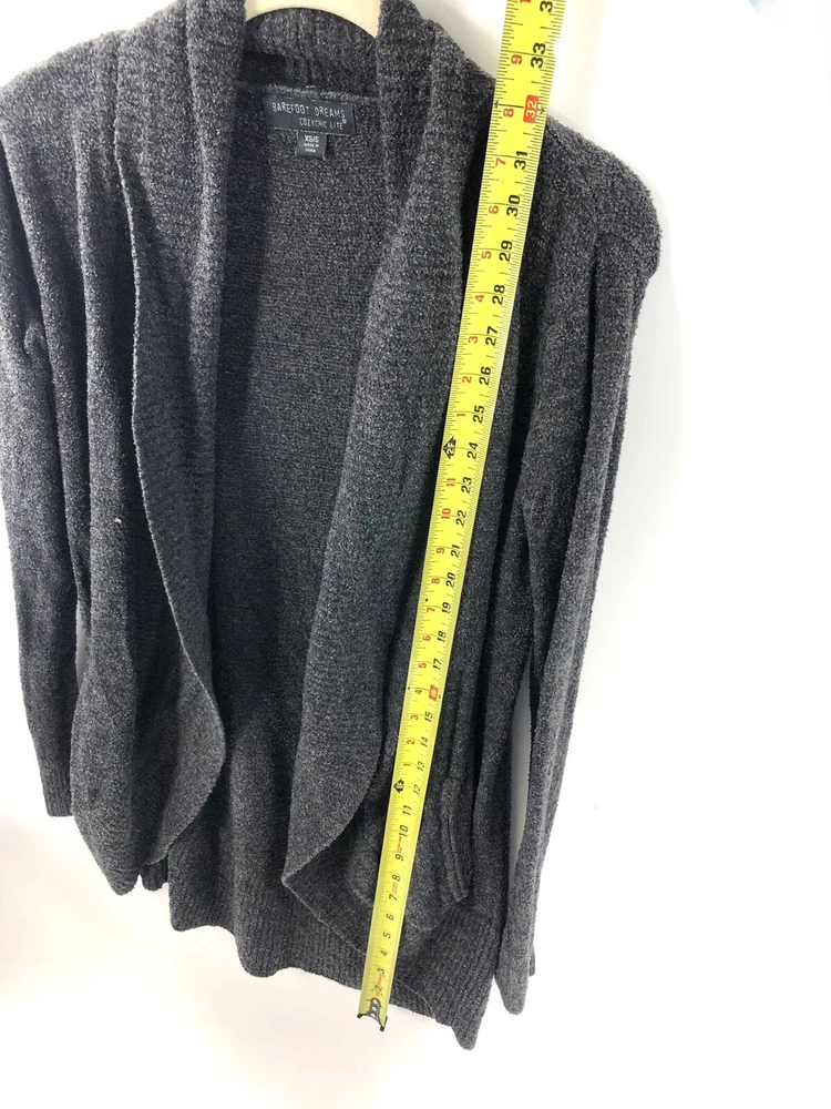 Barefoot Dreams CozyChic Lite Circle Cardigan Soft Gray Cozy Pockets Sz XS Small Size- XS/S Color- Dark Gray Fabric- signature soft cozy fabric Retail-$116.00 Style 452 Feather soft Open front design Pockets Ribbed shawl collar Longer length- goes past the hips Great preowned condition- no stains or holes Smoke free home This is a preowned item. Normal signs of wear is to be expected. Please view all pictures. I will disclose any major damage beyond normal wear and laundering. Color in pictures may be different in person due to lighting.