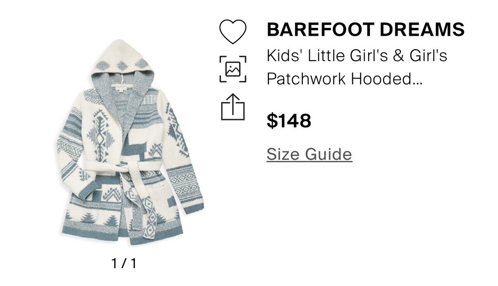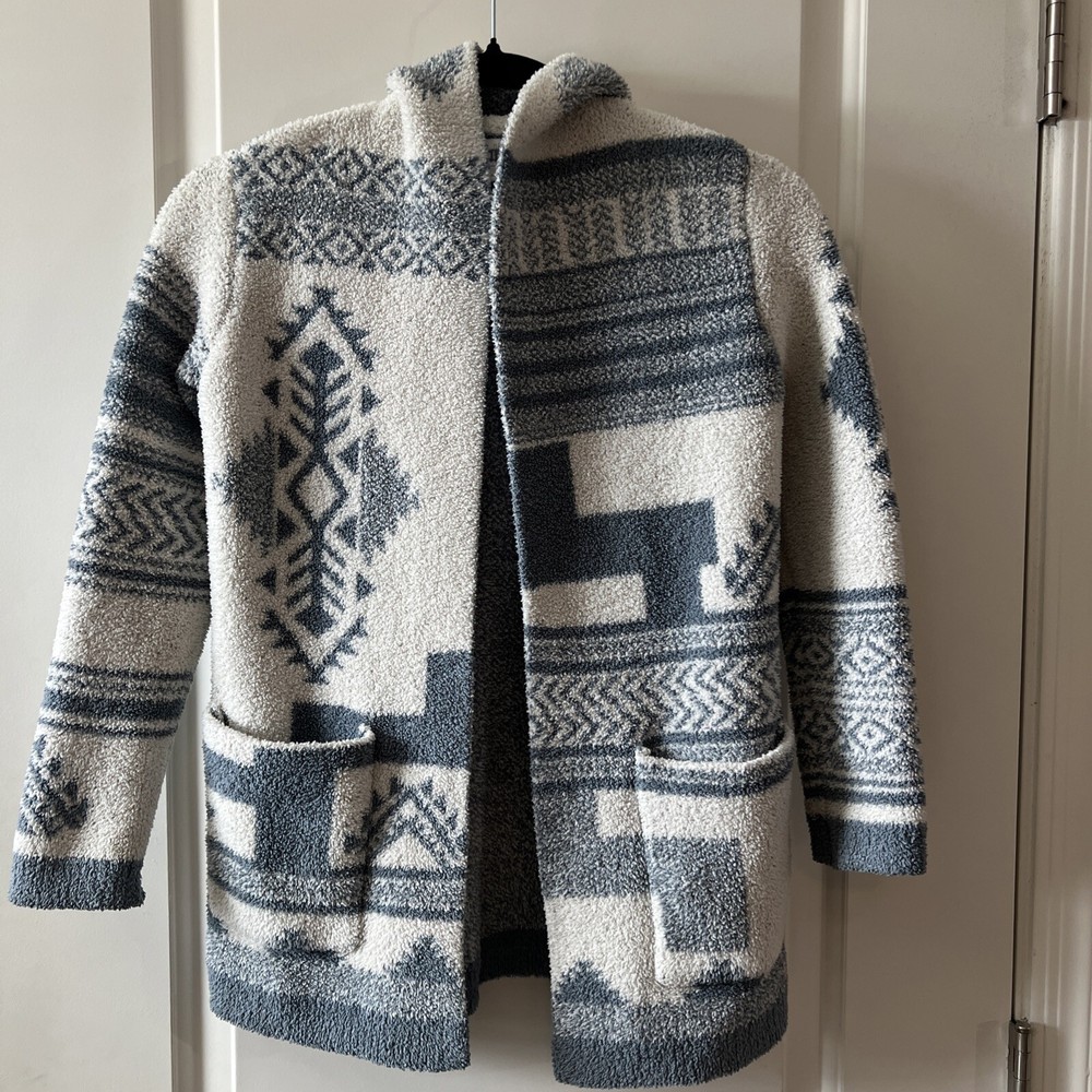 Barefoot Dreams CozyChic Patchwork Cardigan Kids Size 6/7 Missing belt...