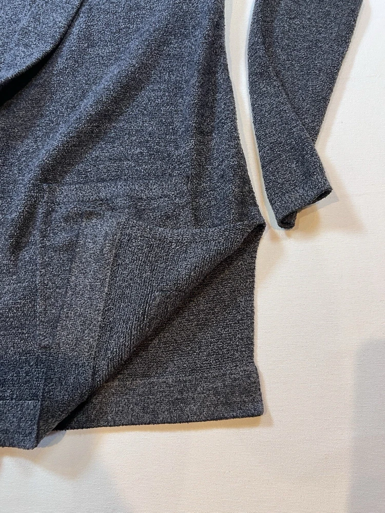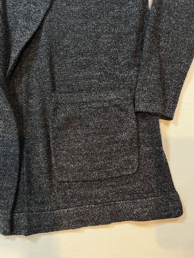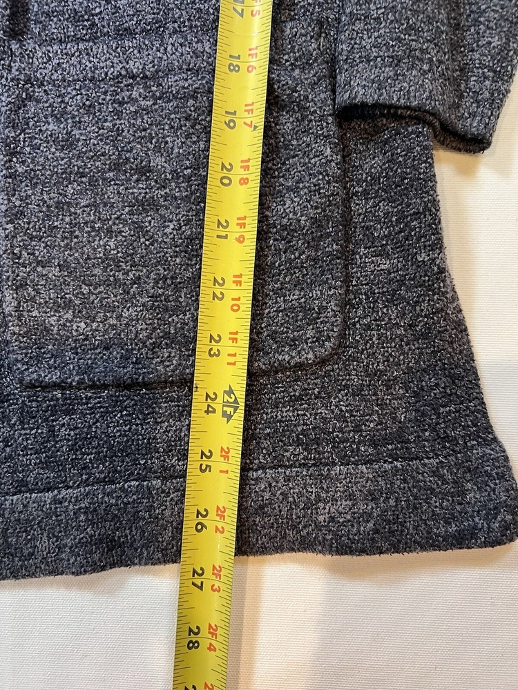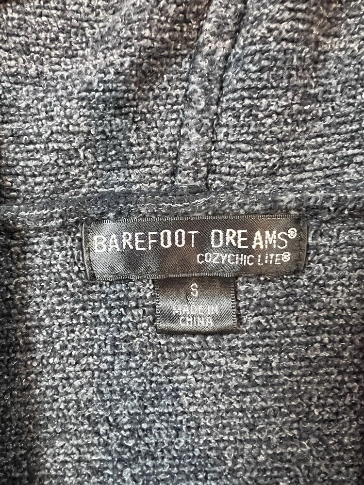 Elevate your casual wardrobe with this cozy and stylish cardigan from Barefoot Dreams. The chic dark gray color and solid pattern make it a versatile addition to any outfit. The knit fabric type and long sleeve length provide warmth and comfort, perfect for the winter, fall, and spring seasons. The open-front neckline and hooded feature of this cardigan make it a relaxed and laid-back piece, ideal for travel and everyday wear. The rayon and nylon material are machine washable for easy care. The cardigan is perfect for those who love a Bohemian, cozy, lounge, casual, and warm themed style. Add this knit sweater to your collection for a comfortable and fashionable look. In great condition with no stains, rips or tears. Smoke free home.