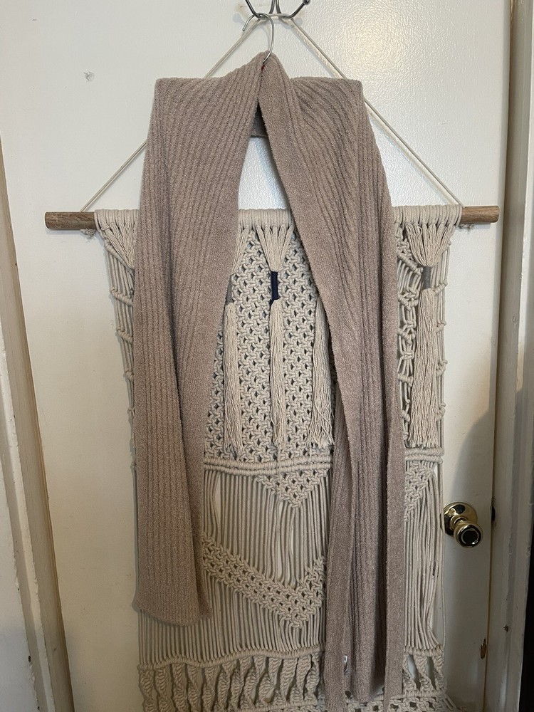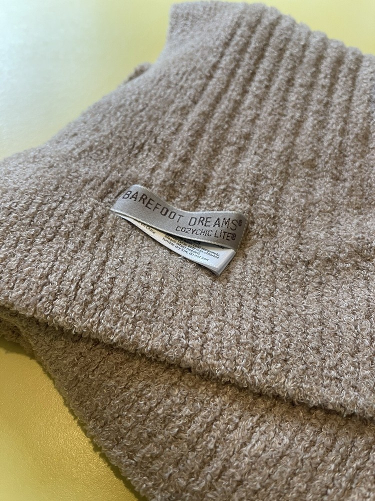 This Barefoot Dreams Cozychic Lite Scarf in taupe is a soft and cozy rectangular scarf made from a knit fabric blend of nylon and rayon. It features a solid brown color, making it a versatile accessory for the winter season. This dreamy scarf by Barefoot Dreams is perfect for women looking for a multi-functional and stylish addition to their wardrobe.
