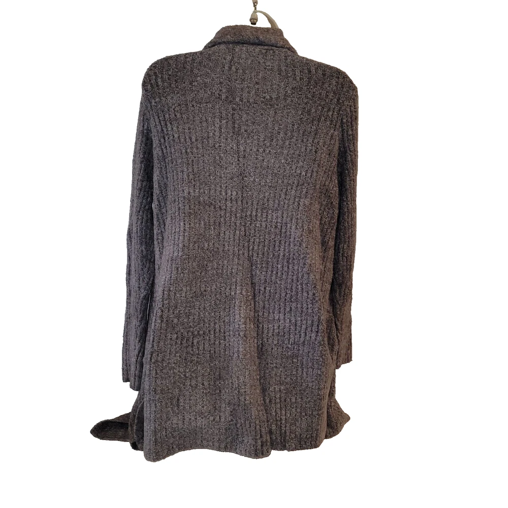 Open style cardigan sweater with shawl collar. Front pockets. Longer length. Barefoot Dreams CozyChic Lite 494 Montecito Open Cardigan Long Sweater Shawl Collar Pockets The Barefoot Dreams CozyChic Lite Montecito Cardi (Style 494) is a luxurious cardigan known for its comfort and style. It features a ribbed knit, a cozy shawl collar, side pockets, and generous side slits. It's perfect for lounging around or adding a touch of elegance to your casual outfits. Brand: BAREFOOT DREAMS Style: CozyChic Lite Style 494 Montecito Open Cardigan Sweater Size: Women’s M – measurements provided below. Color: Gray Condition: Good pre-owned condition – as seen in photos. Made in China Material: 78% Nylon 22% Rayon cozychic lite knit Care: Machine Wash Approximate Measurements (laying flat, unstretched): Chest: 22" (front, armpit to armpit) Waist: 21.5" (front, side to side) Length: 30" (top of shoulder to bottom hem.) Open style cardigan sweater with shawl collar. Front pockets. Longer length. All my items come from a clean, smoke-free home. I ship next business day. Thanks for looking!