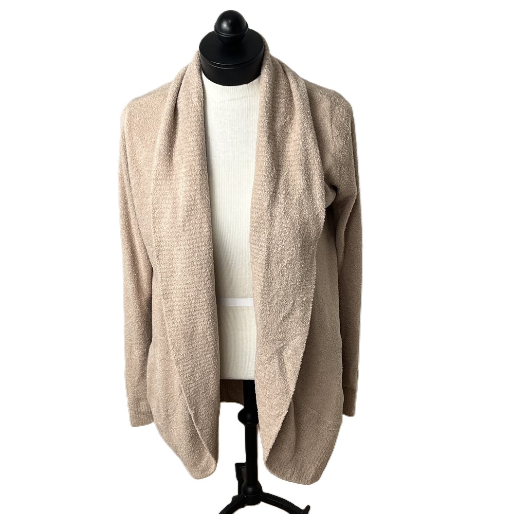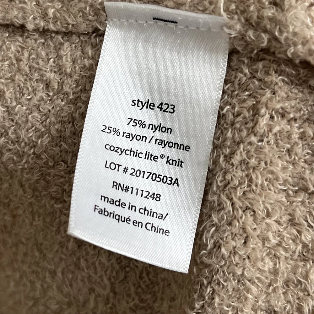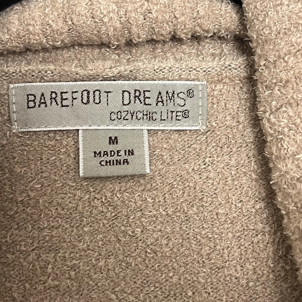 Barefoot Dreams Oatmeal Taupe Open Front Pockets Casual Cardigan Size Medium This snuggly mocha cardigan from Barefoot Dreams is a wardrobe essential. It features an open front with long sleeves and convenient pockets, making it perfect for layering during chilly autumn evenings. The cozy chic design is crafted for comfort without compromising on style. Features - Size: Medium - Style: Casual - Material: 75% nylon, 25% rayon / rayonne - Color: Oatmeal Taupe - Manufacturing: China - Style number: cozychic lite® knit, style 423 - Features: Open front, Long sleeves, Pockets, Knit, Relaxed fit Condition - Like new condition. No major flaws. Approximate flat measurements See pictures.