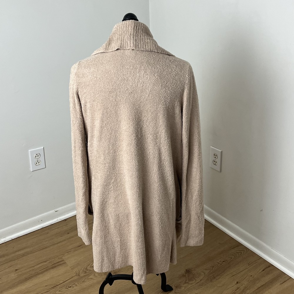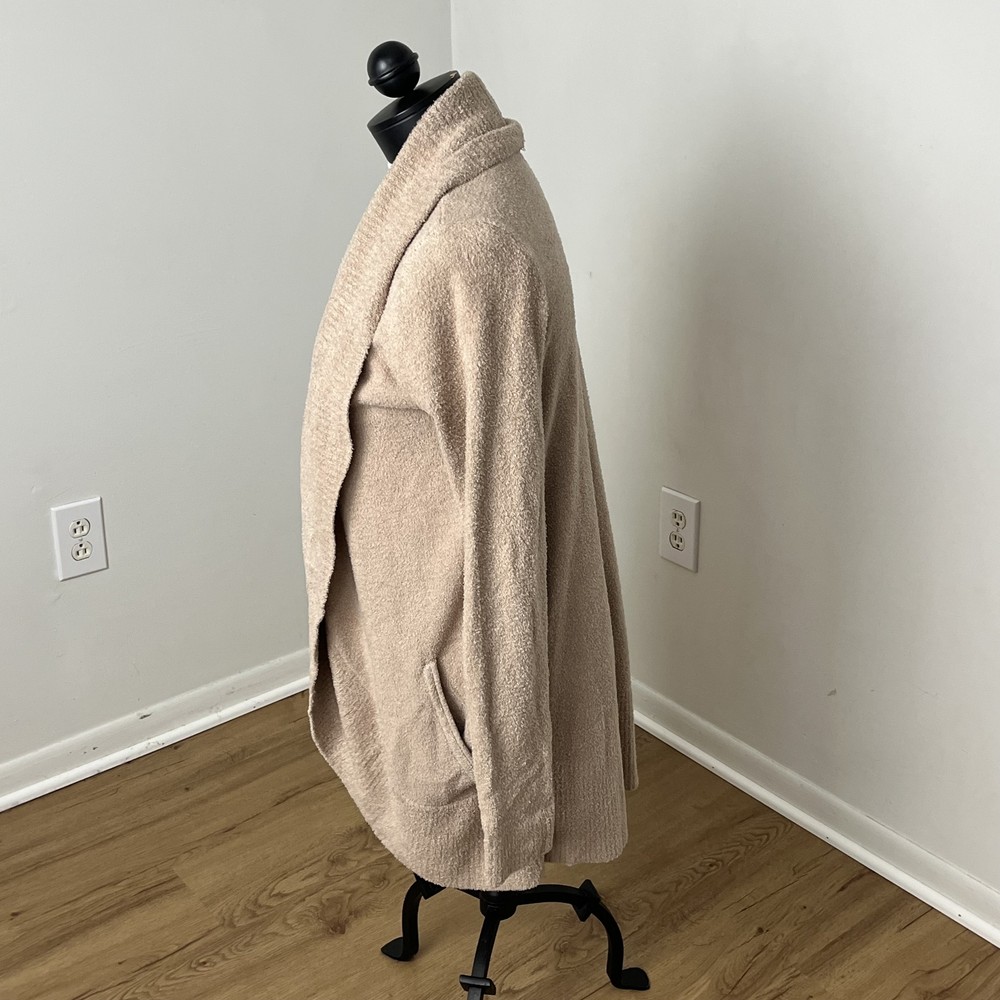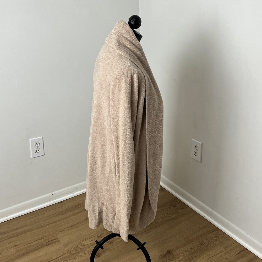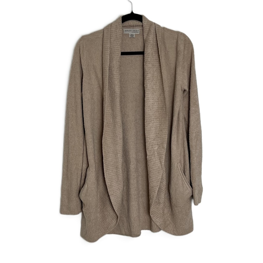 Barefoot Dreams Oatmeal Taupe Open Front Pockets Casual Cardigan Size Medium This snuggly mocha cardigan from Barefoot Dreams is a wardrobe essential. It features an open front with long sleeves and convenient pockets, making it perfect for layering during chilly autumn evenings. The cozy chic design is crafted for comfort without compromising on style. Features - Size: Medium - Style: Casual - Material: 75% nylon, 25% rayon / rayonne - Color: Oatmeal Taupe - Manufacturing: China - Style number: cozychic lite® knit, style 423 - Features: Open front, Long sleeves, Pockets, Knit, Relaxed fit Condition - Like new condition. No major flaws. Approximate flat measurements See pictures.