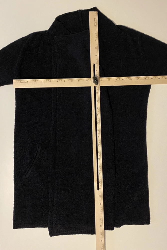Barefoot Dreams women's size Small Medium Cozychic Lite Knit Island Wrap in Black 903 Open style cardigan that is super soft and comfortable! Very good, clean pre-owned condition. Measurements are taken with item laying flat and UNstretched and may vary within 1/2". Measurements can be seen in photos. Please check to ensure a proper fit. Pre-owned clothing items are washed per Ebay's Standards.