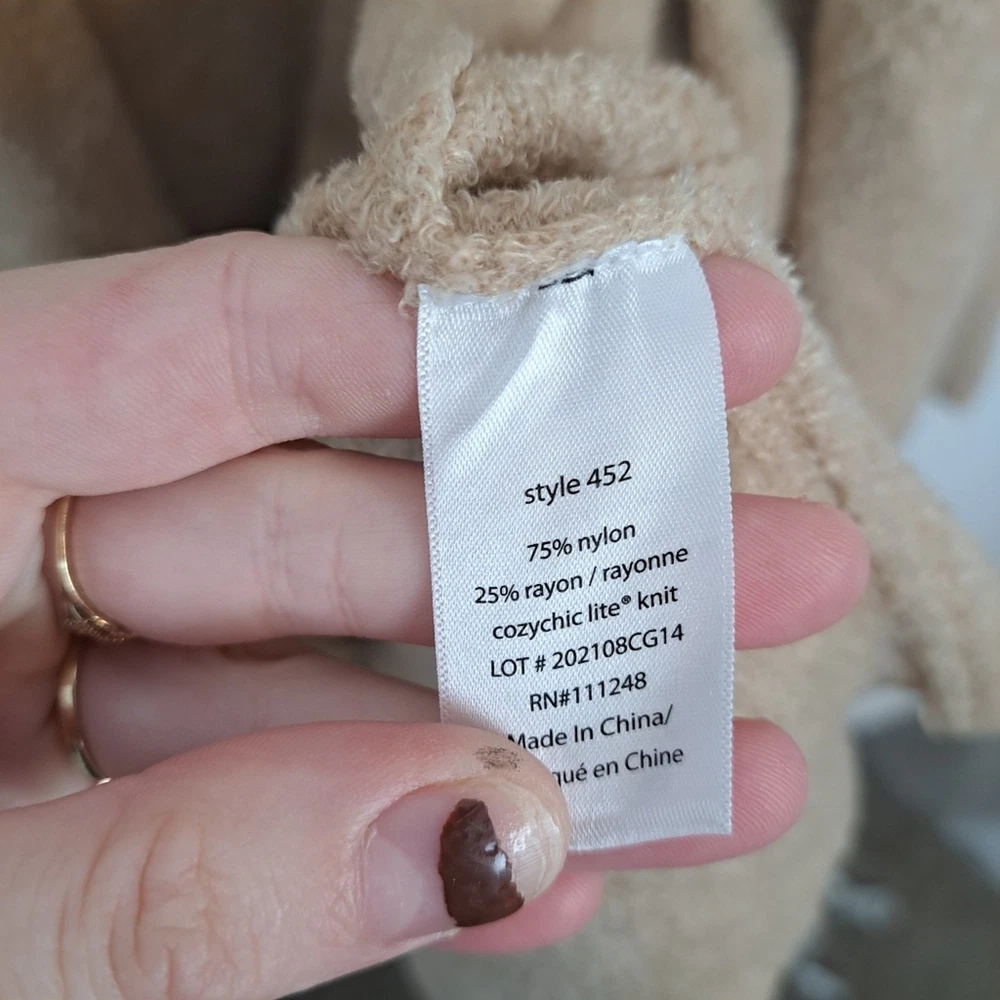 This cardigan is unbelievably soft and cozy—perfect for lounging! The bamboo fabric feels light yet warm, and the relaxed fit is so comfortable. Love the neutral color—easy to pair with anything. Despite being pre-owned, it looks brand new with zero flaws. A dreamy addition to my wardrobe!