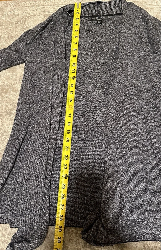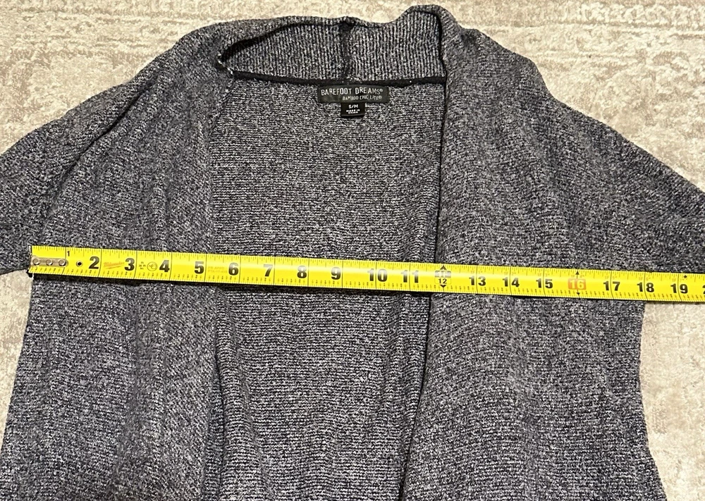 Elevate your winter, fall, or spring wardrobe with this beautiful gray cascade front cardigan from Barefoot Dreams. Made from high-quality bamboo material, this regular fit sweater features long sleeves and an open design that exudes dreamy elegance. Perfect for women who love to embody the vintage-inspired style, this cardigan is an excellent addition to any wardrobe. This sweater is designed to be comfortable and stylish, making it an ideal choice for any casual occasion. The front bamboo design adds a touch of sophistication to the cardigan, making it an excellent choice for women who want to look their best without compromising on comfort. Good condition