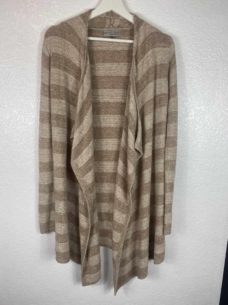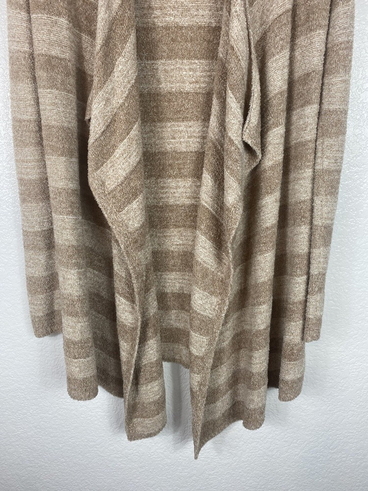 Barefoot Dreams Womens Cardigan Small-Medium S/M Tan Beige Stripe 436 Bamboo Chic Lite Super Soft and Cozy!!! Great Condition