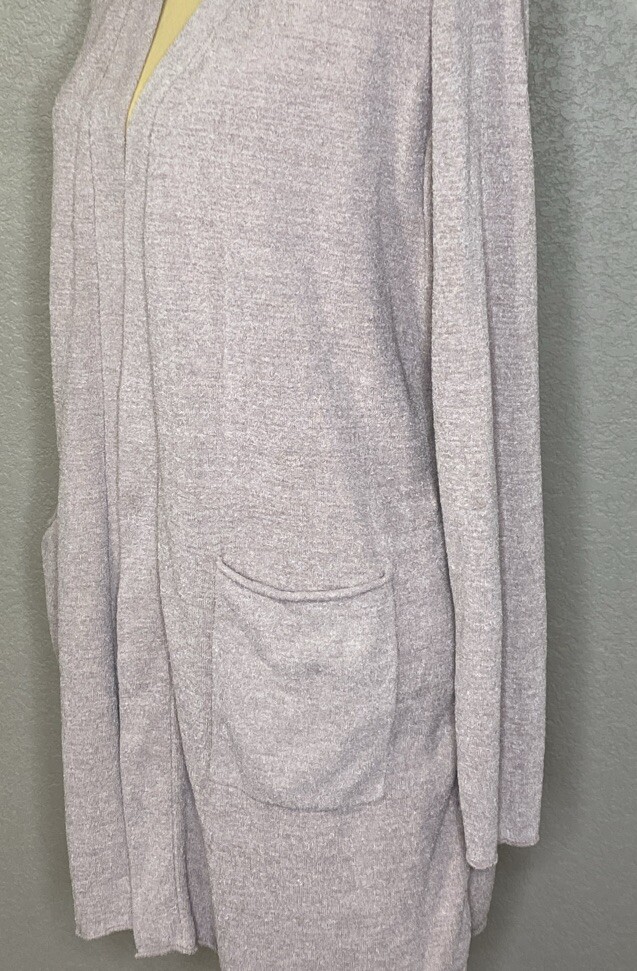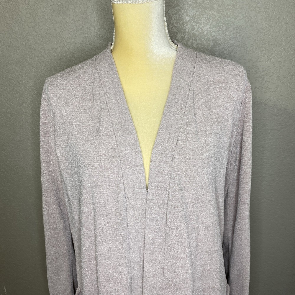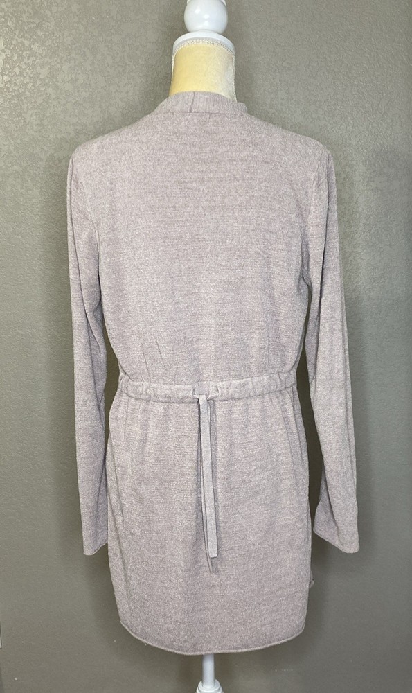 • Barefoot Dreams Cozychic Ultra Lite Santa Monica Cardigan • size medium • pinkish-taupe • open front longer length sweater • cinch tie in back • style profile: comfy, loungewear, winter nights • measurements: • bust: 38 inches • sleeve length: 25.5 inches • length: 32 inches