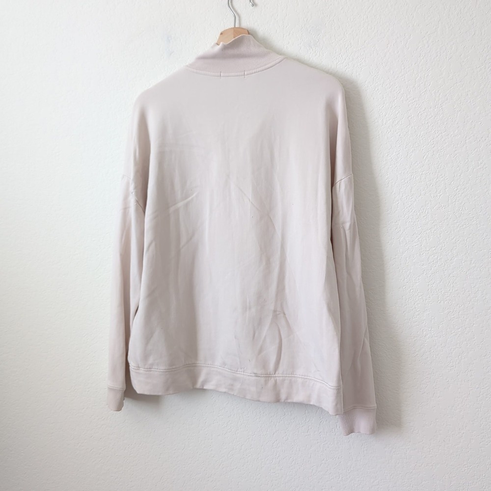 <![CDATA[<div>Barefoot dreams size large women's pullover sweatshirts cream style number bdwmc21542 quarter zip. Excellent condition. 24" Length 22" Pit to Pit Measurements are approximate. Smoke-free home. Feel good about this purchase! Top rated 5-Stars 1,000+ customer reviews. Fast shipping and dedicated customer service. You can be confident that you’re making a conscious choice for the planet.